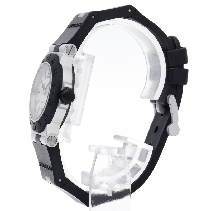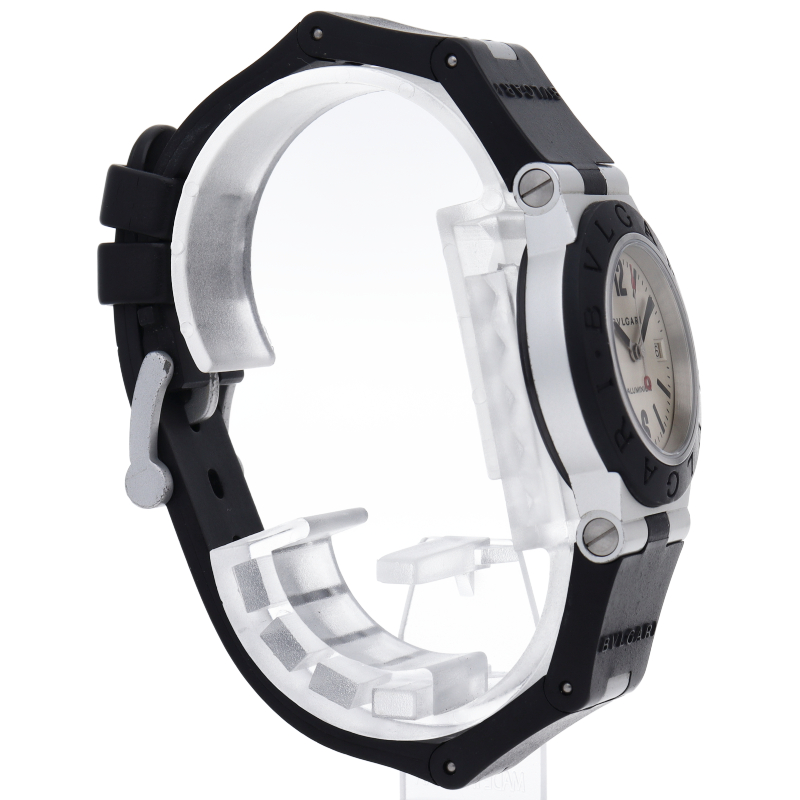 ブルガリの人気シリーズでスポーティーな「アルミニウム」。異素材であるアルミニウムとラバーをうまく組み合わせた個性的でブルガリらしい革新的な1本。AL29A/AL29TAVD