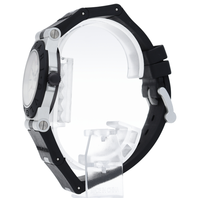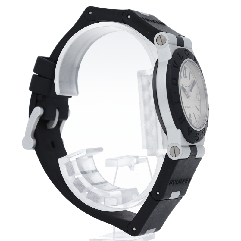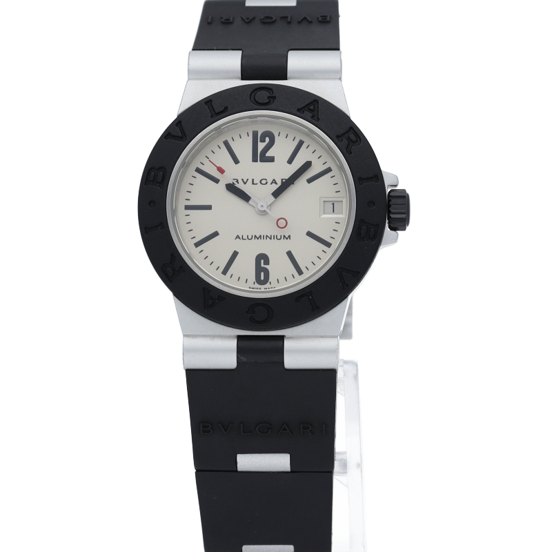 ブルガリの人気シリーズでスポーティーな「アルミニウム」。異素材であるアルミニウムとラバーをうまく組み合わせた個性的でブルガリらしい革新的な1本。AL32A/AL32TAVD