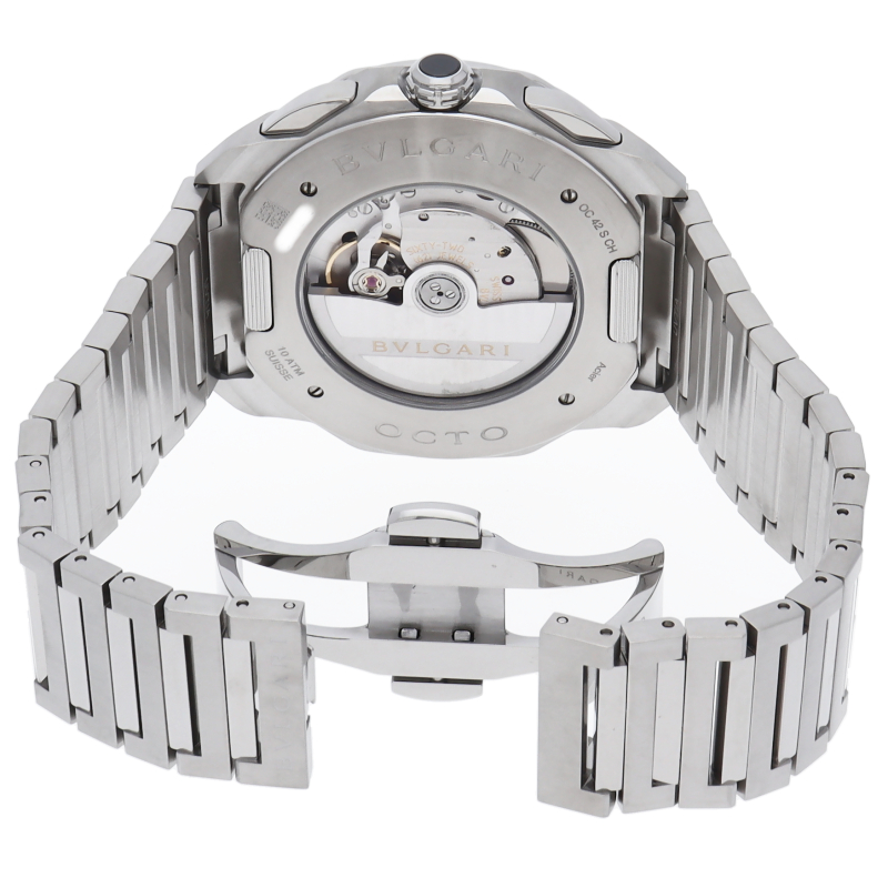 ラテン語で「8」を意味するオクトは、ローマの古代建築に着想を得たオクタゴン(八角形)ケースとラウンドベゼルを調和させたブルガリのハイクラスモデル。その大胆でありながらも繊細なフォルムは、何世紀にも亘って培われてきた不朽の価値を教えてくれます。OC42SCH/103471