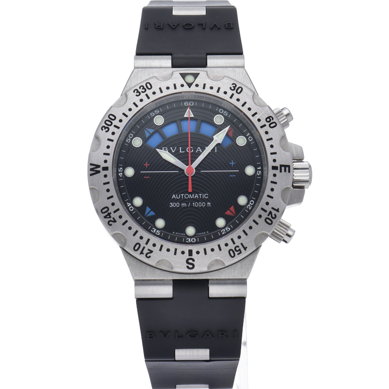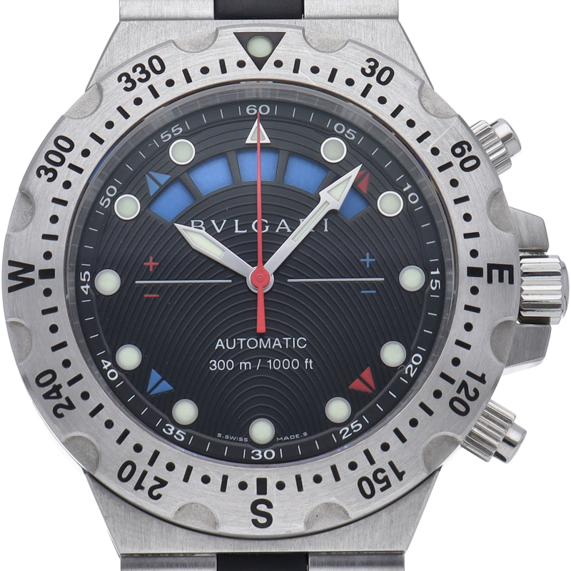 スポーツとエレガントなイメージを融合させたブルガリらしいスポーツモデルです。スポーツ系のモデルは実用性を前面に押し出して無骨になりがちですが、ダイバーウォッチでありながらフォーマルな装いにも合わせられるデザイン性の高さは流石です。