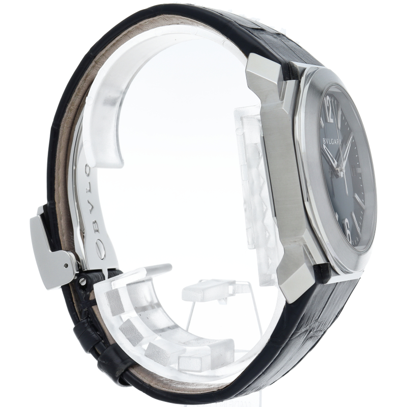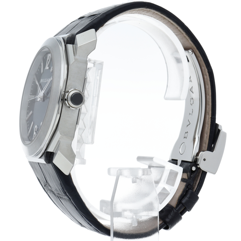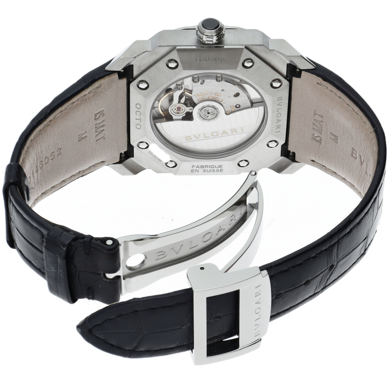 ローマのマクセンティウスのバシカからインスピレーションを得た特徴的な八角形のフォルムに手作業でポリッシュ仕上げとラッカー仕上げを施した文字盤。更には手作業でインデックスを植字されているデザイン性に富んだモデルです。BGO38S/BGO38C3SLD。