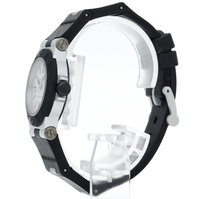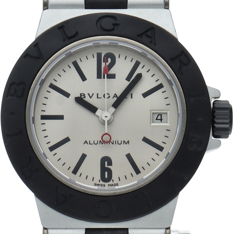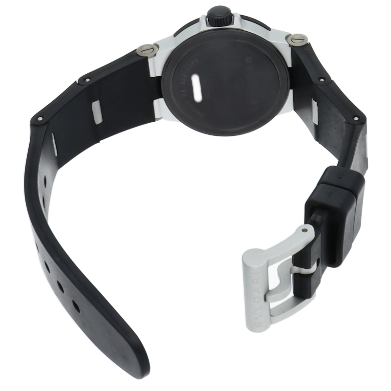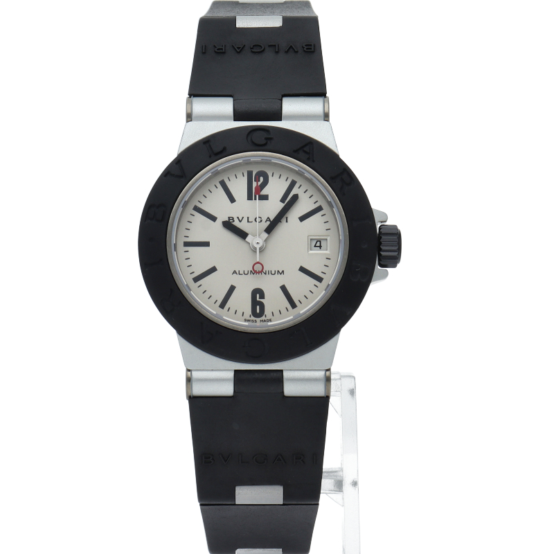 ブルガリの人気シリーズでスポーティーな「アルミニウム」。異素材であるアルミニウムとラバーをうまく組み合わせた個性的でブルガリらしい革新的な1本。AL29TA/AL29TAVD