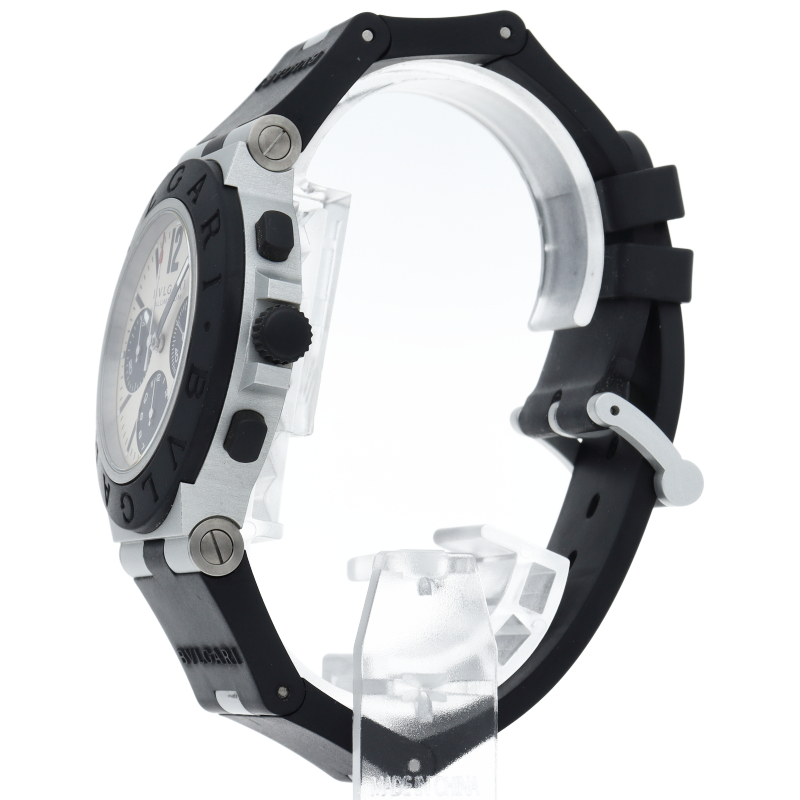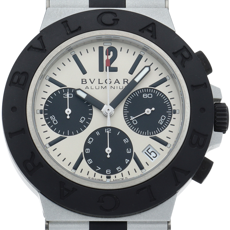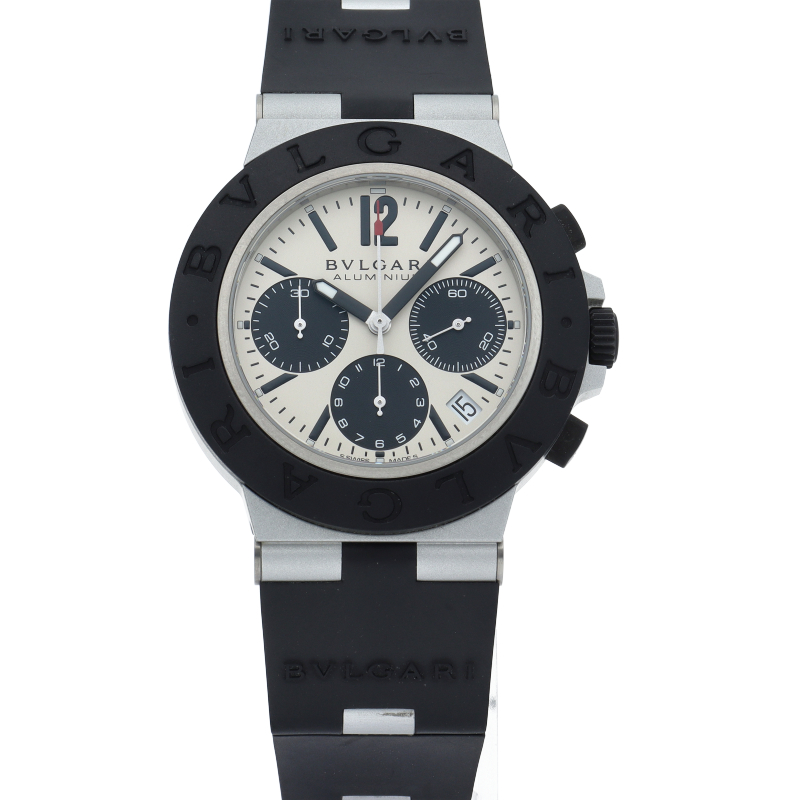 ブルガリの人気シリーズでスポーティーな「アルミニウム」。異素材であるアルミニウムとラバーをうまく組み合わせた個性的でブルガリらしい革新的な1本。