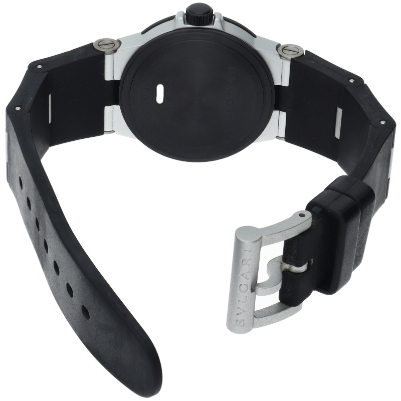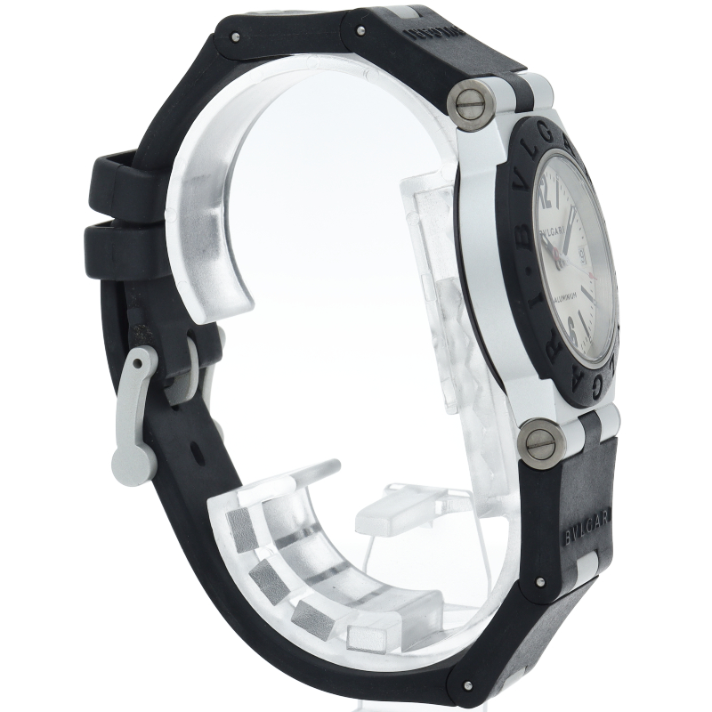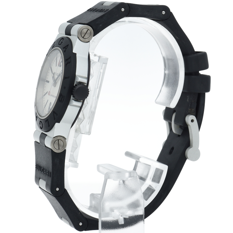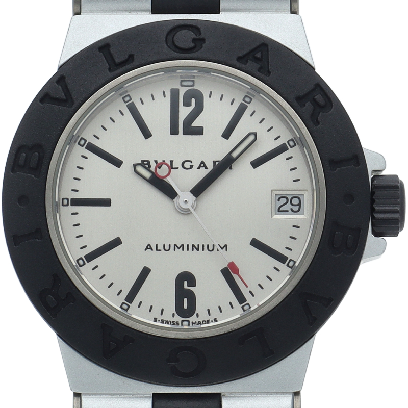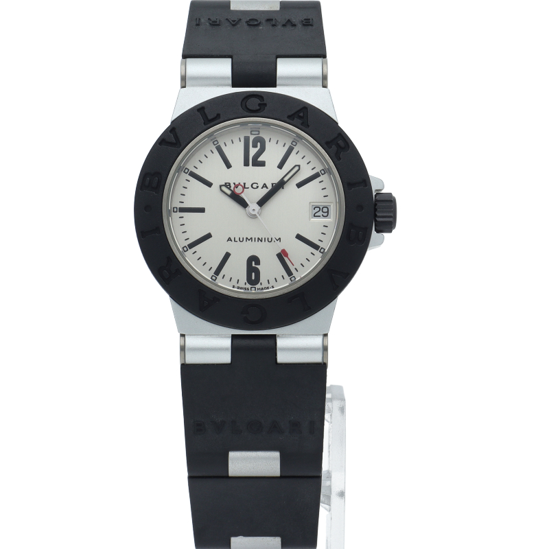 ブルガリの人気シリーズでスポーティーな「アルミニウム」。異素材であるアルミニウムとラバーをうまく組み合わせた個性的でブルガリらしい革新的な1本。AL32TA/AL32TAVD