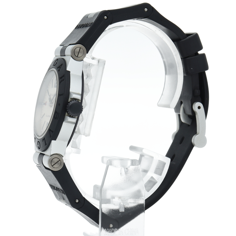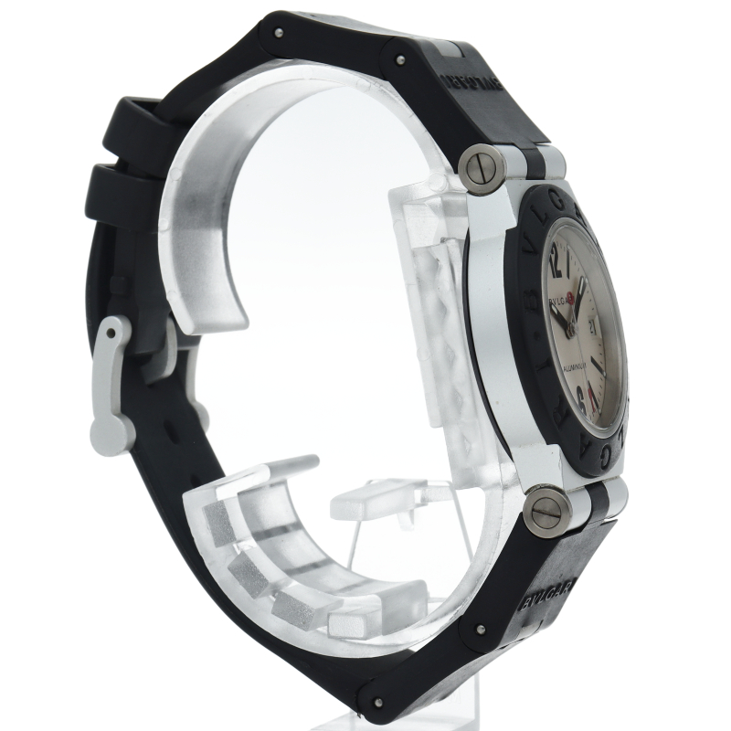 ブルガリの人気シリーズでスポーティーな「アルミニウム」。異素材であるアルミニウムとラバーをうまく組み合わせた個性的でブルガリらしい革新的な1本。AL32A/AL32TAVD