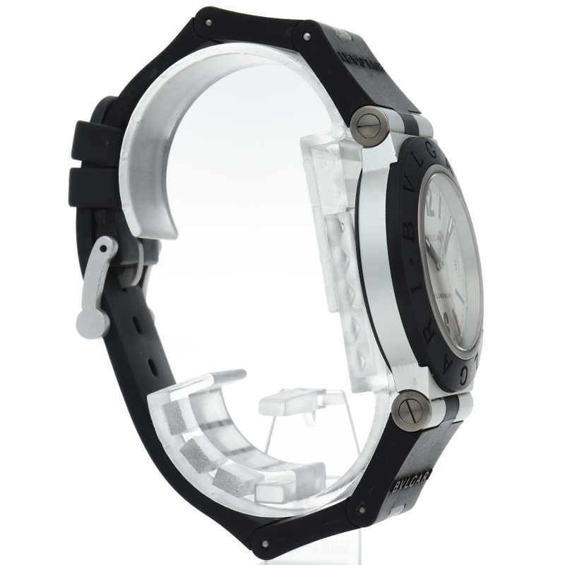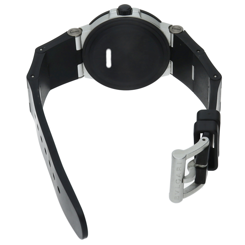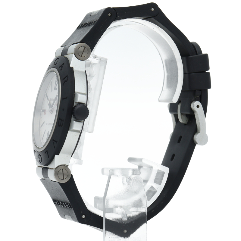 ブルガリの人気シリーズでスポーティーな「アルミニウム」。異素材であるアルミニウムとラバーをうまく組み合わせた個性的でブルガリらしい革新的な1本。