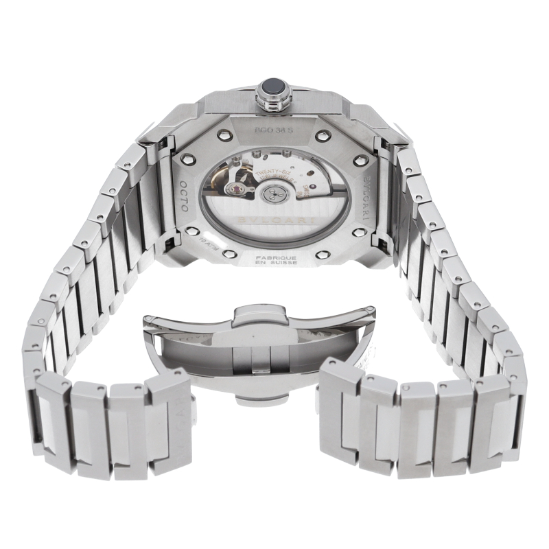 ラテン語で「8」を意味するオクトは、ローマの古代建築に着想を得たオクタゴン(八角形)ケースとラウンドベゼルを調和させたブルガリのハイクラスモデル。その大胆でありながらも繊細なフォルムは、何世紀にも亘って培われてきた不朽の価値を教えてくれます。BGO38S/BGO38BSSD