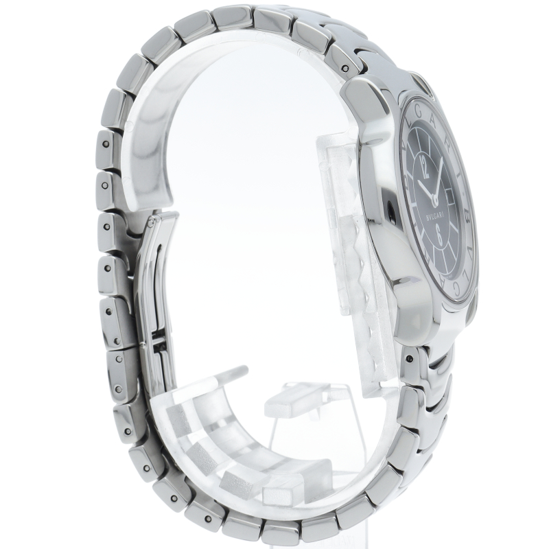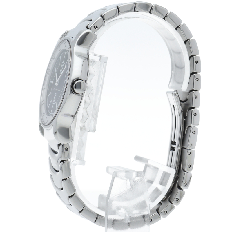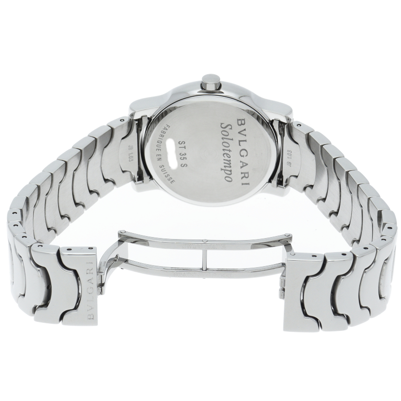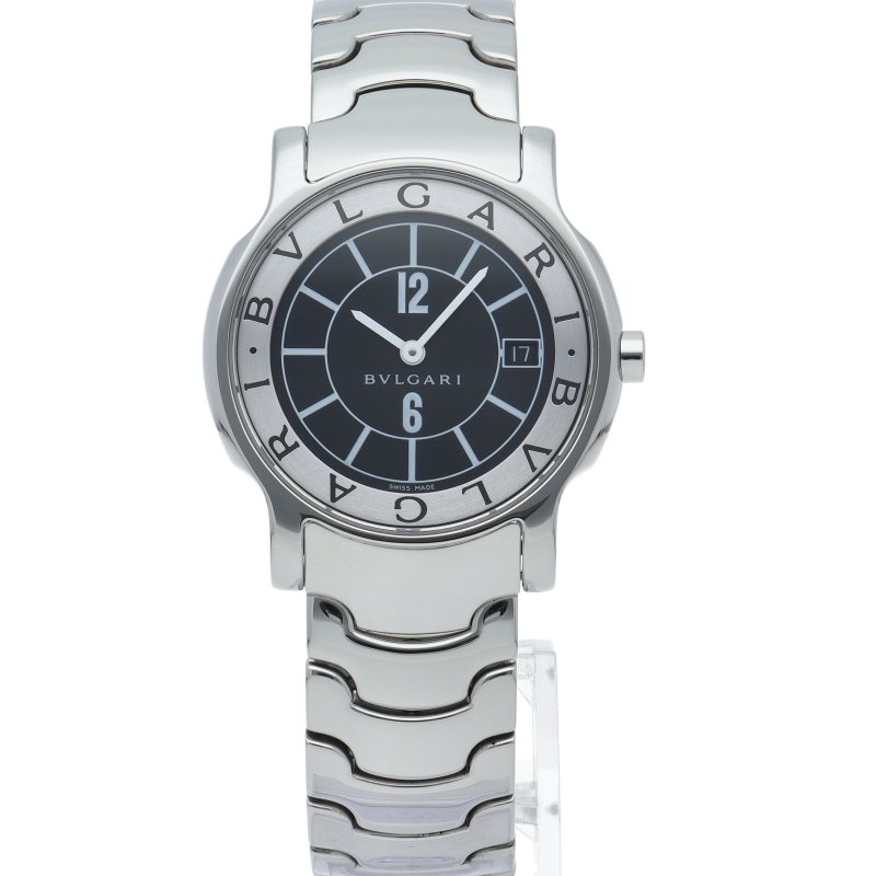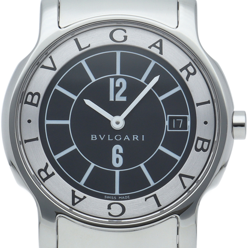 ブルガリの人気ロングセラー商品で「ソロテンポ」。シンプルなデザインでスタイルを選ばずに使用できるのが特徴的です。便利なデイト機能付。ST35S/ST35BSSD。