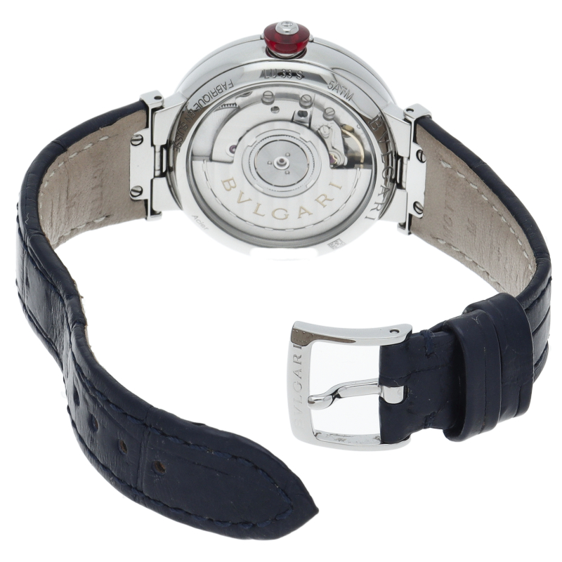 セルペンティからインスピレーションを受け、より日常使いにもお使い頂けるようなデザインになった「ルチェア」シリーズ。2014年から発売され、リューズにつけられたカボションカットのピンクストーンが特徴的です。LU33S。