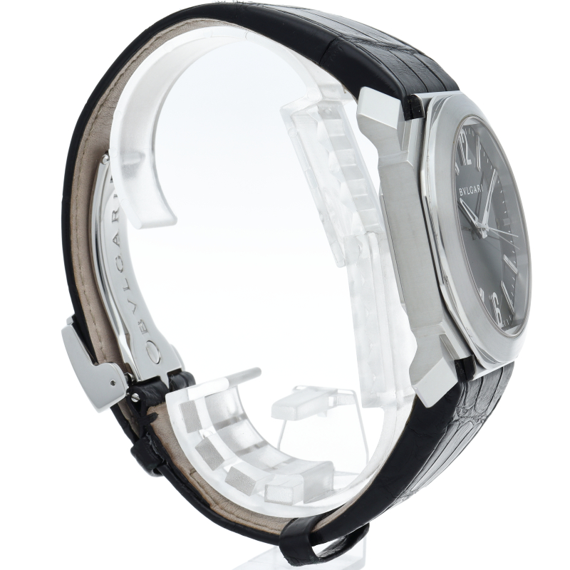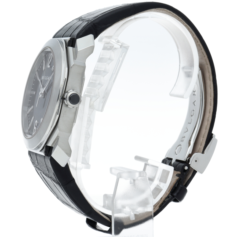 ラテン語で「8」を意味するオクトは、ローマの古代建築に着想を得たオクタゴン(八角形)ケースとラウンドベゼルを調和させたブルガリのハイクラスモデル。その大胆でありながらも繊細なフォルムは、何世紀にも亘って培われてきた不朽の価値を教えてくれます。BGO41S/101964。