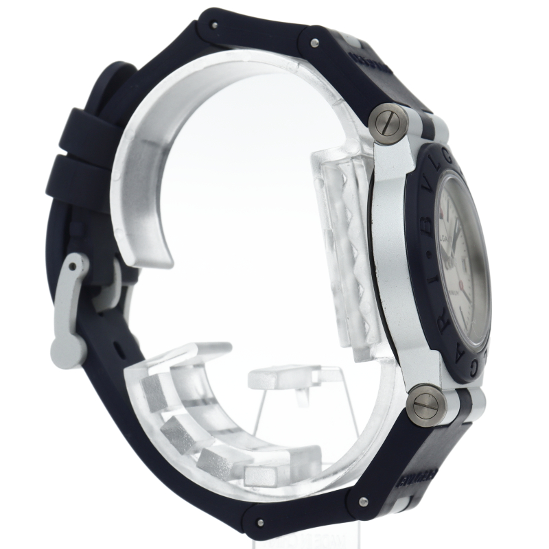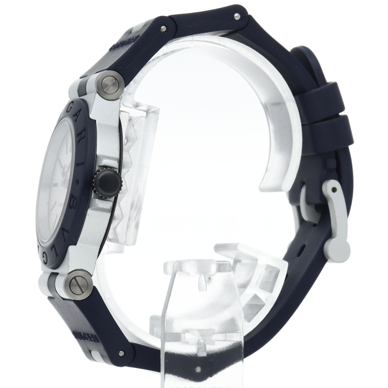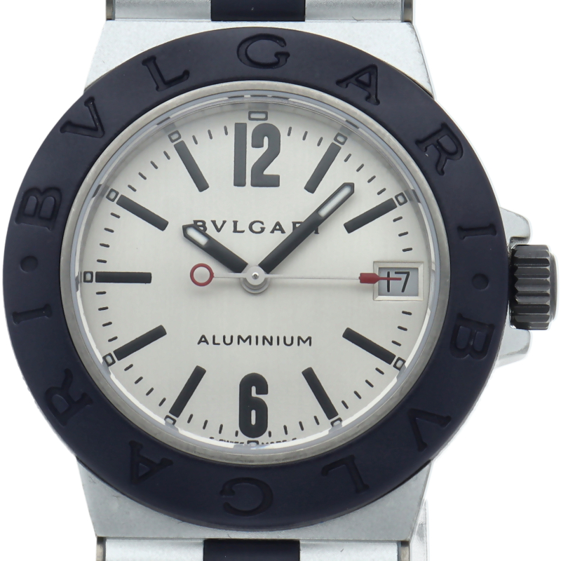 ブルガリの人気シリーズでスポーティーな「アルミニウム」。異素材であるアルミニウムとラバーをうまく組み合わせた個性的でブルガリらしい革新的な1本。AL32TA/AL32TAVD