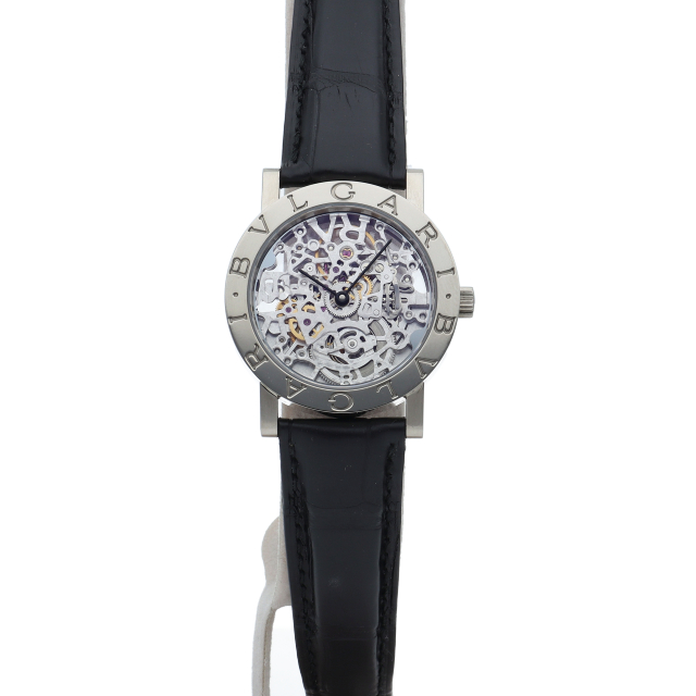 ブルガリを代表する人気シリーズ「ブルガリブルガリ」のスケルトンモデル。ホワイトゴールドのケースがなんとも高級感があり、スケルトンで内部の構造が見え時計好きにはたまらない一本です。