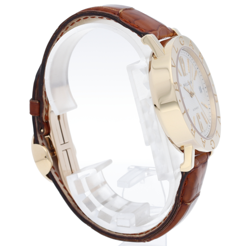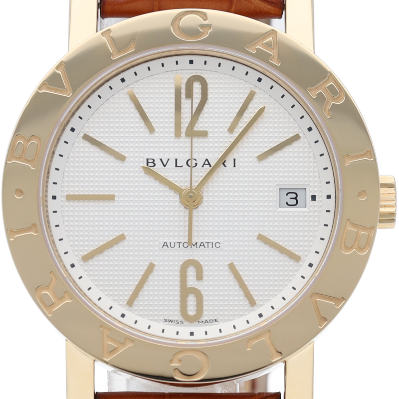 ブルガリを代表する人気シリーズ「ブルガリブルガリ」。ベゼルを囲むように刻まれたブランドロゴとシンプルで上品なデザインが人気です。BB38GLAUTO/BB38WGLDAUTO/N