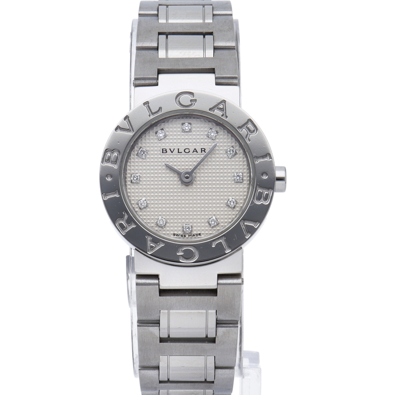 ブルガリを代表する人気シリーズ「ブルガリブルガリ」。ベゼルを囲むように刻まれたブランドロゴとシンプルで上品なデザインが人気です。BB23SS/BB23SSD/12P。