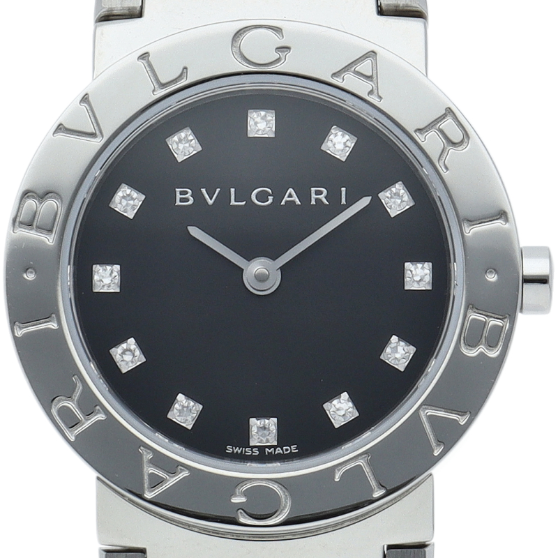 ブルガリを代表する人気シリーズ「ブルガリブルガリ」。ベゼルを囲むように刻まれたブランドロゴとシンプルで上品なデザインが人気です。12Pダイヤ付。BB26SS/BB26SSD/12P