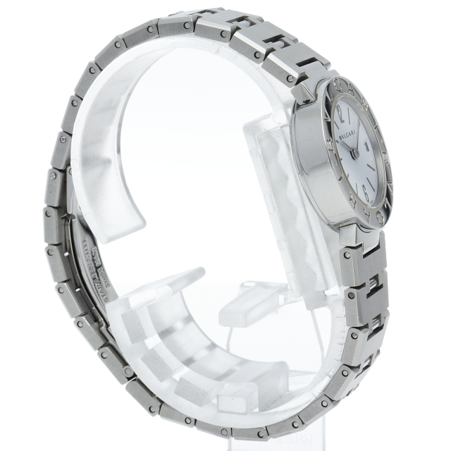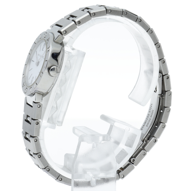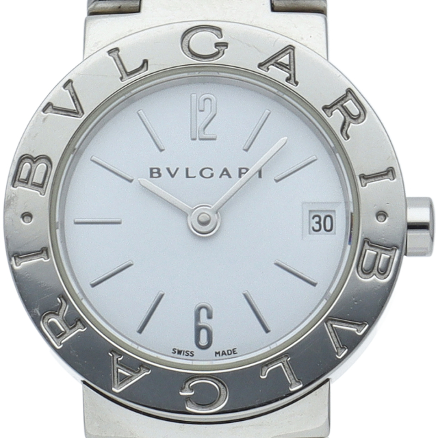 ブルガリを代表する人気シリーズ「ブルガリブルガリ」。ベゼルを囲むように刻まれたブランドロゴとシンプルで上品なデザインが人気です。旧型ブレスの日本限定の白文字盤です。BB23SS(BB23SSD)