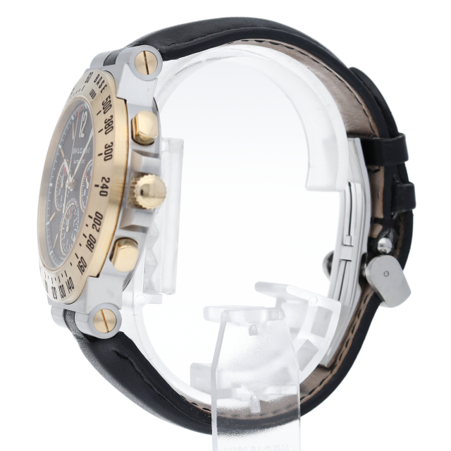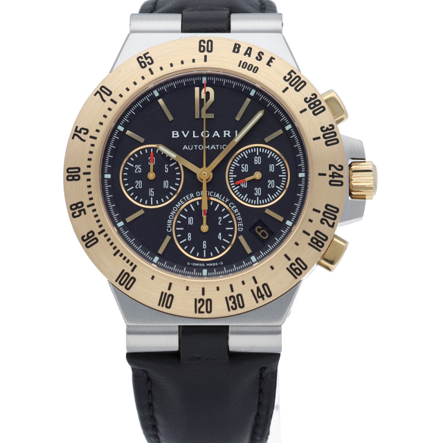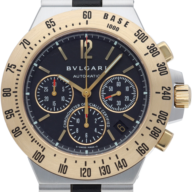 スポーティーでお洒落なデザイン。かつゴールドボディで豪華な逸品になっております。大振りなケースと金のベゼルに刻まれたタキメーターがいかにもスポーツウォッチらしく、黒い文字盤がよりケースのゴールドを際立たせています。