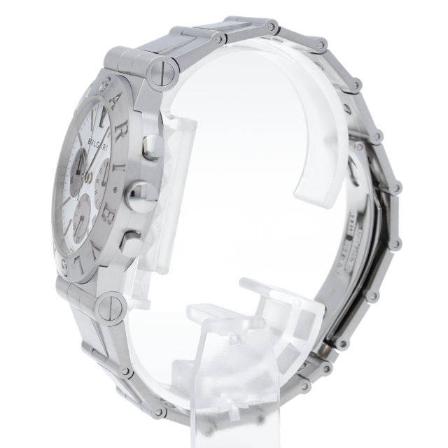 ブルガリでも人気のディアゴノシーリーズ「スポーツクロノグラフ」。スポーティーかつシンプルなデザインにデイト表示・クロノグラフ機構を兼ね備えた1本。CH35S(CH35WSSD)。