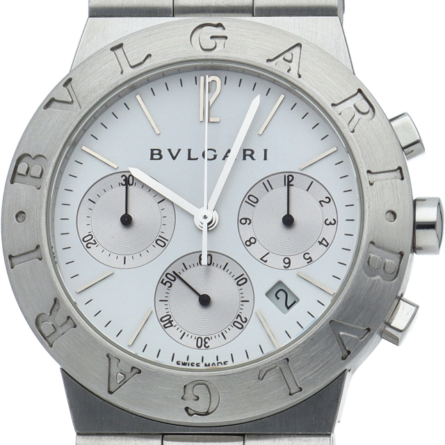 ブルガリでも人気のディアゴノシーリーズ「スポーツクロノグラフ」。スポーティーかつシンプルなデザインにデイト表示・クロノグラフ機構を兼ね備えた1本。CH35S(CH35WSSD)