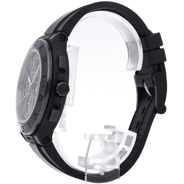ディアゴノとは「競争する」という意味のギリシャ語にヒントを得て名付けられました。 一目でブルガリだとわかる洗練されたデザインのベゼルのロゴが特徴です。スポーティながら上品さが漂う1本です。DG42SMCCH(DG42BSMCVDCH)