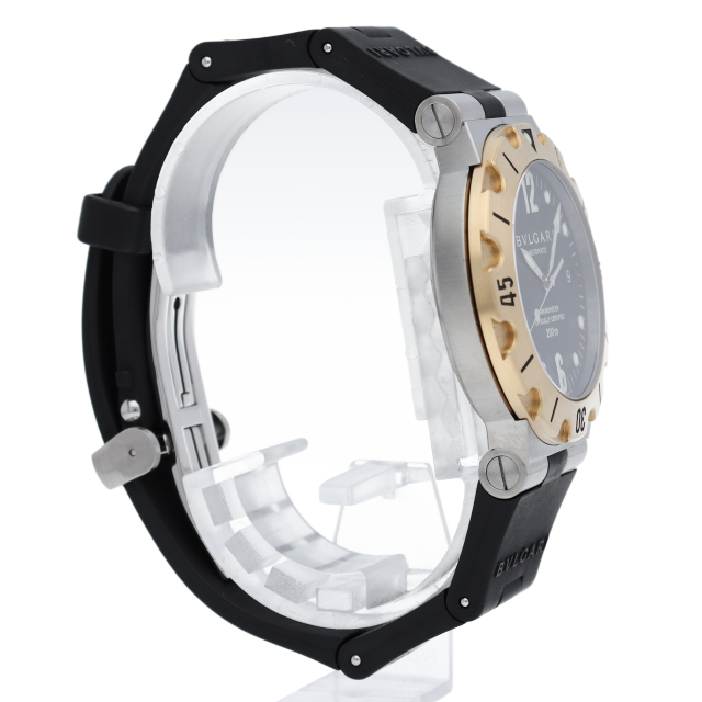 ブルガリの人気ダイバーズウォッチ「スクーバ」。このモデルは、ブルガリの時計の中でも最新技術を使い、特徴的なシリーズとして区別されてるスクーバです。スポーティーでシンプルなダイバーモデルでありながら、エレガントなデザインが爽やかなイメージを与えます。SD38SG(SD38SGVD)