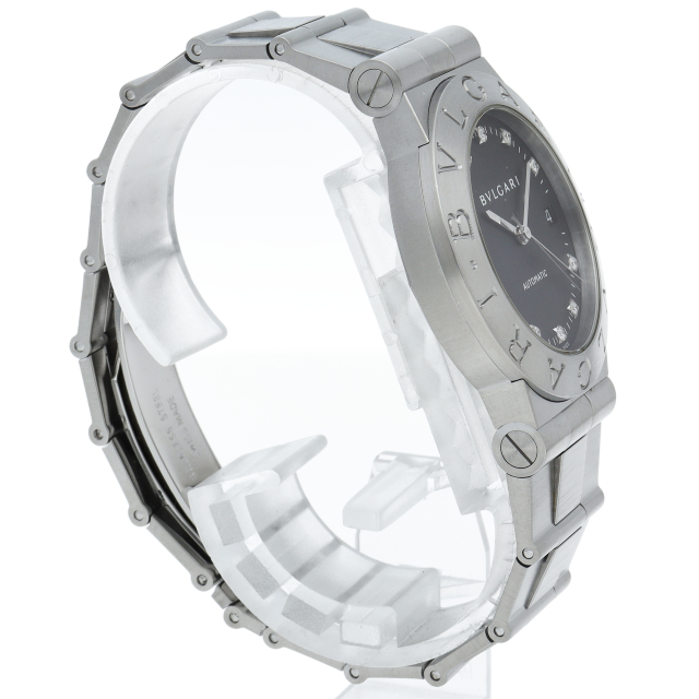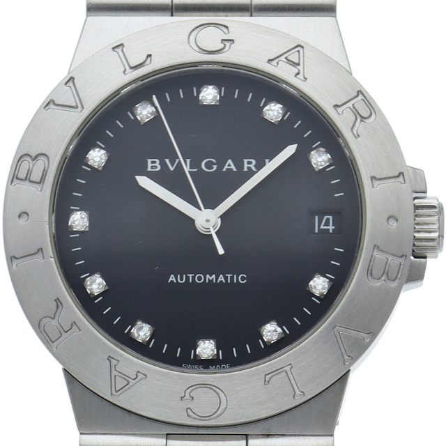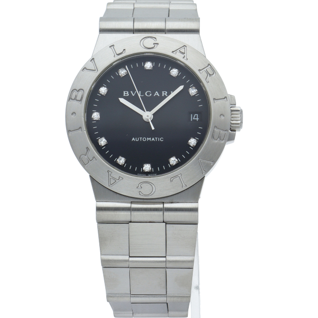 ブルガリの人気ロングセラーウォッチ「ブルガリ スポーツ」。ベゼルに刻まれた「BVLGARI」のロゴが特徴的な1本。11Pダイヤ。LCV35S(LCV35BSSD/11)