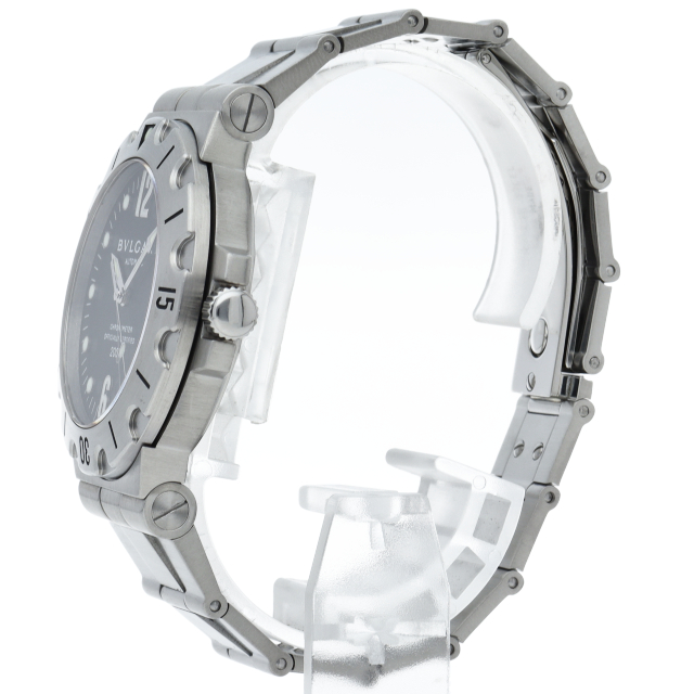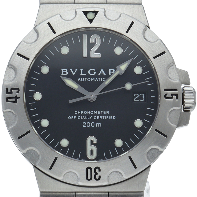 ブルガリの人気ダイバーズウォッチ「スクーバ」。このモデルは、ブルガリの時計の中でも最新技術を使い、特徴的なシリーズとして区別されてるスクーバです。スポーティーでシンプルなダイバーモデルでありながら、エレガントなデザインが爽やかなイメージを与えます。SD38S(SD38SSD)。
