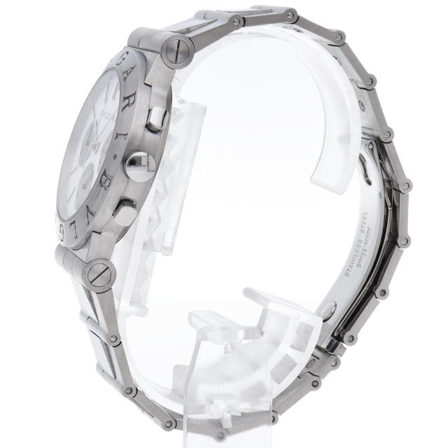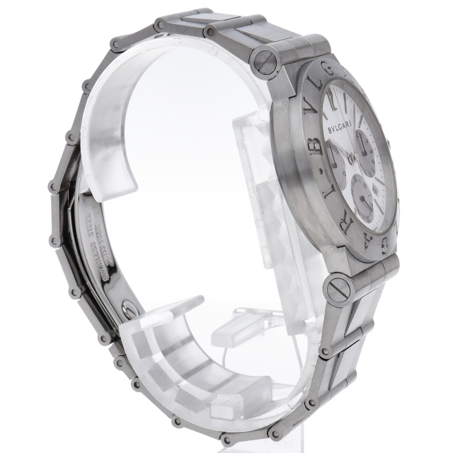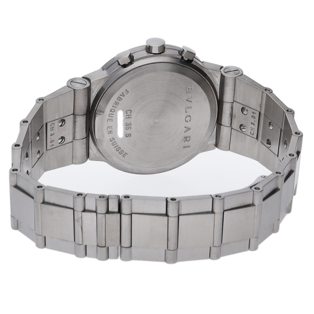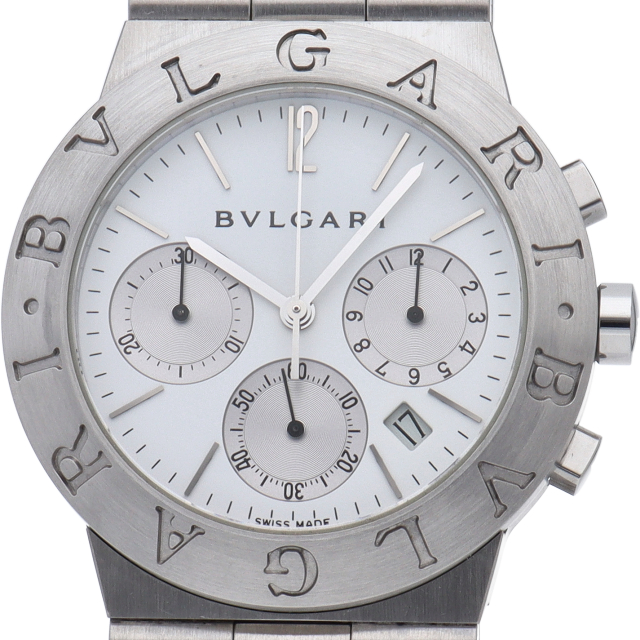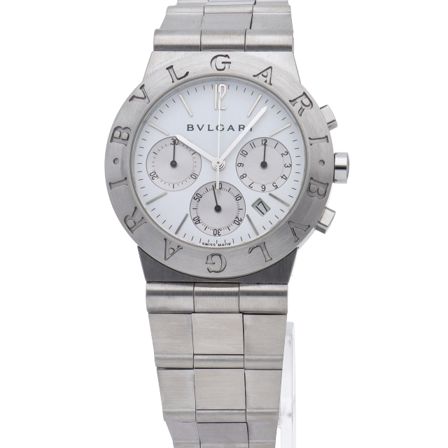 ブルガリでも人気のディアゴノシーリーズ「スポーツクロノグラフ」。スポーティーかつシンプルなデザインにデイト表示・クロノグラフ機構を兼ね備えた1本。CH35S(CH35WSSD)