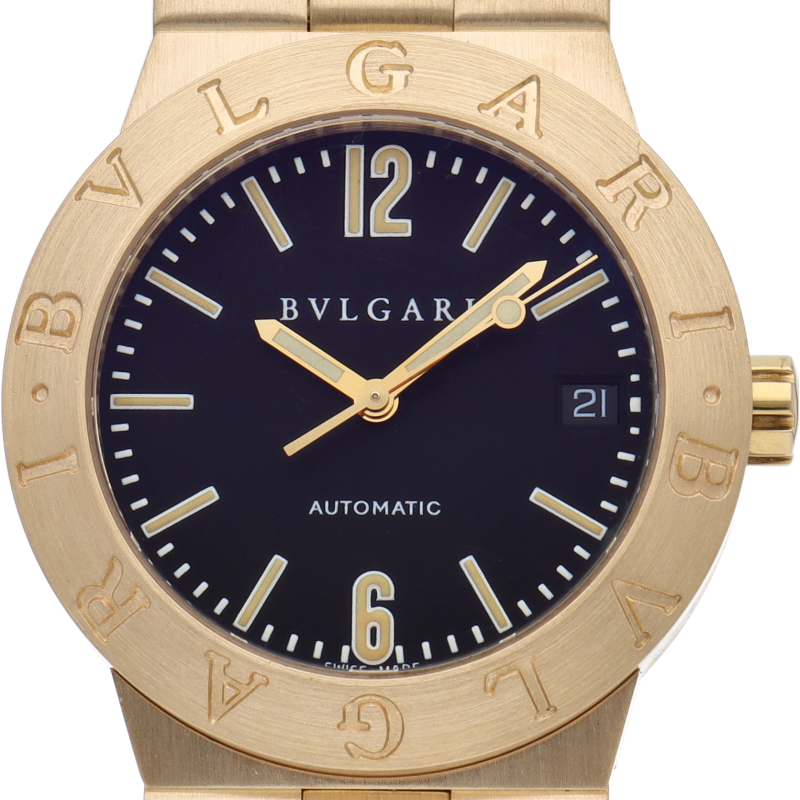ブルガリの人気ロングセラーウォッチ「ブルガリ スポーツ」。ベゼルに刻まれた「BVLGARI」のロゴが特徴的な1本。LCV35G。