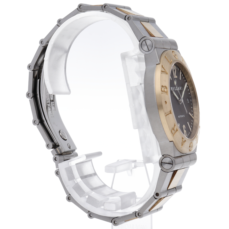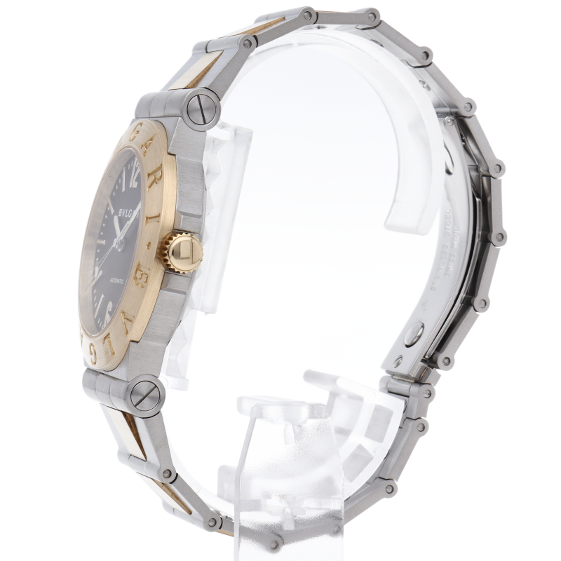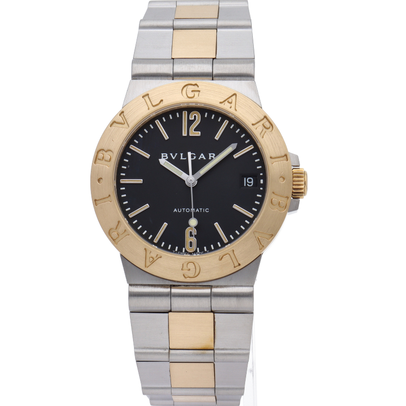 ブルガリの人気ロングセラーウォッチ「ブルガリ スポーツ」。ベゼルに刻まれた「BVLGARI」のロゴが特徴的な1本。高級感溢れるケース・ブレスがステンレスとイエローゴールドで作られた豪華な腕時計です。