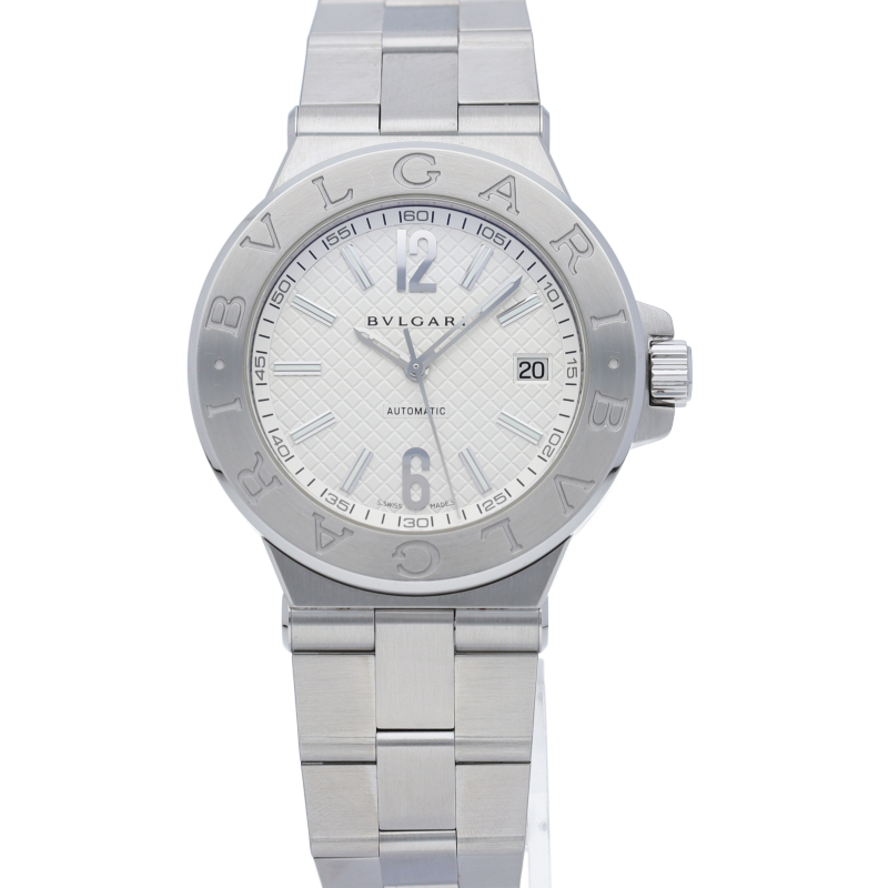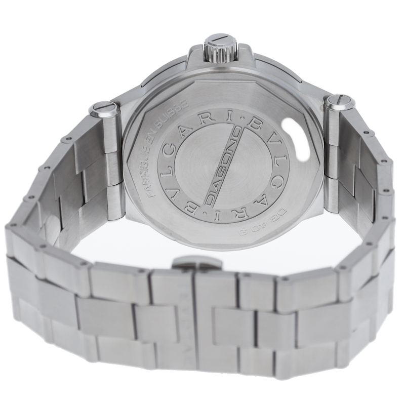 ブルガリでも人気のディアゴノシリーズのクロノグラフです。スポーティーかつシンプルなデザイン。DG40S/DG40C6SSD