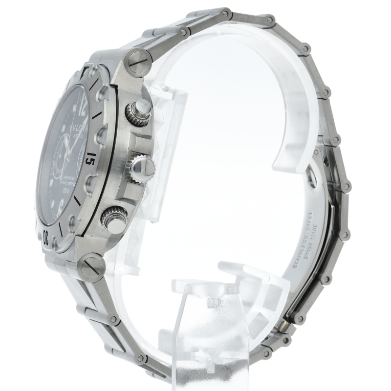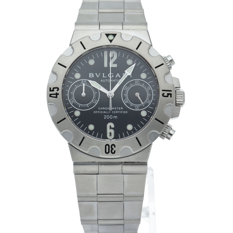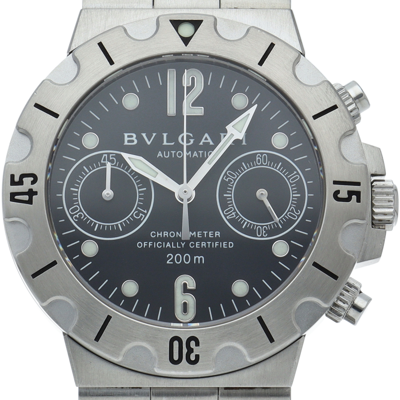 ブルガリを代表するスポーツウォッチである「ディアゴノ スクーバ」。頑強でブルガリの機能性、耐久性という時計の本質に対する実力を存分に味わう事が出来る人気モデルです。クロノグラフ搭載。SCB38S/SCB38SS