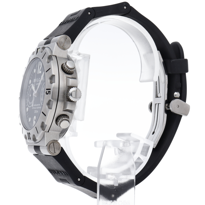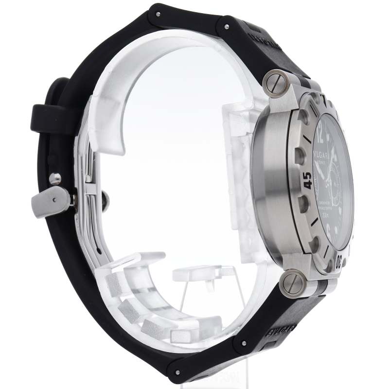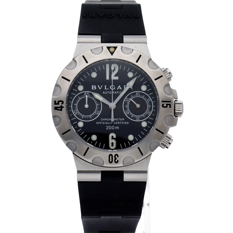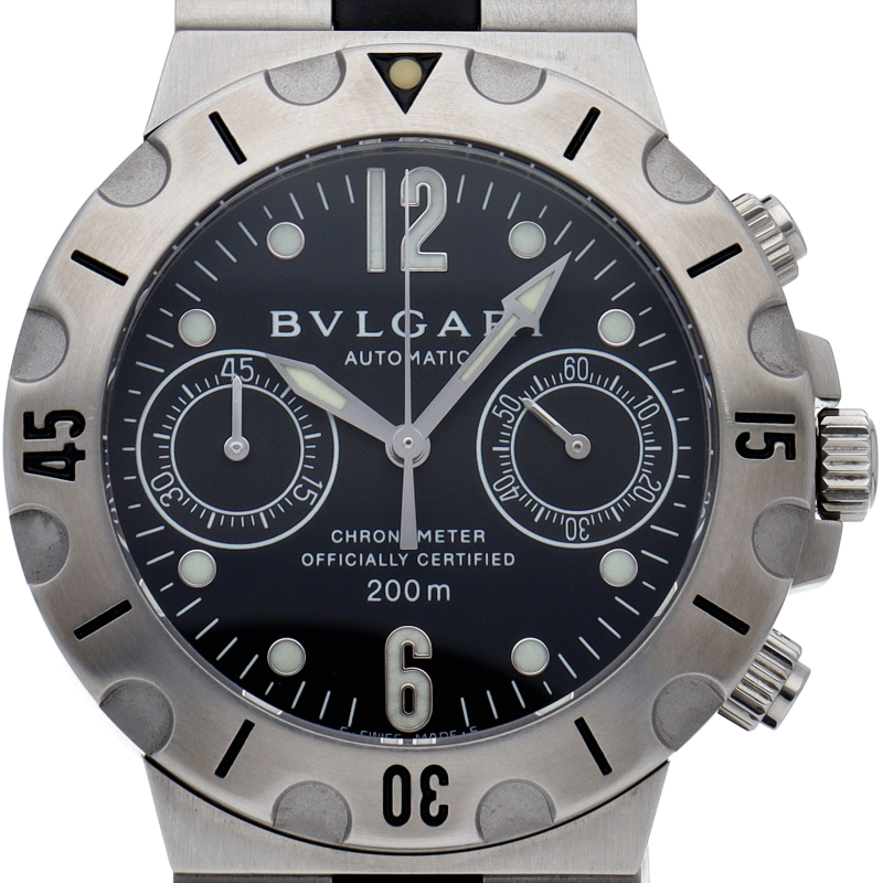 ブルガリの人気ダイバーズウォッチ「スクーバ」。本格的なダイバーズウォッチながら、ブルガリらしいエレガントなデザインが特徴です。SC38S。