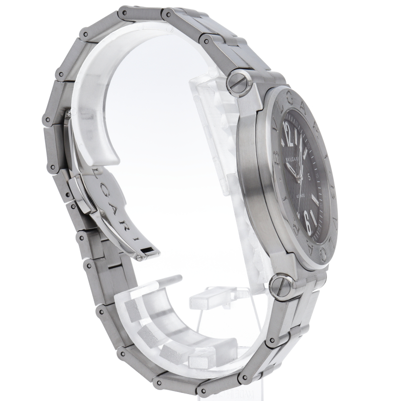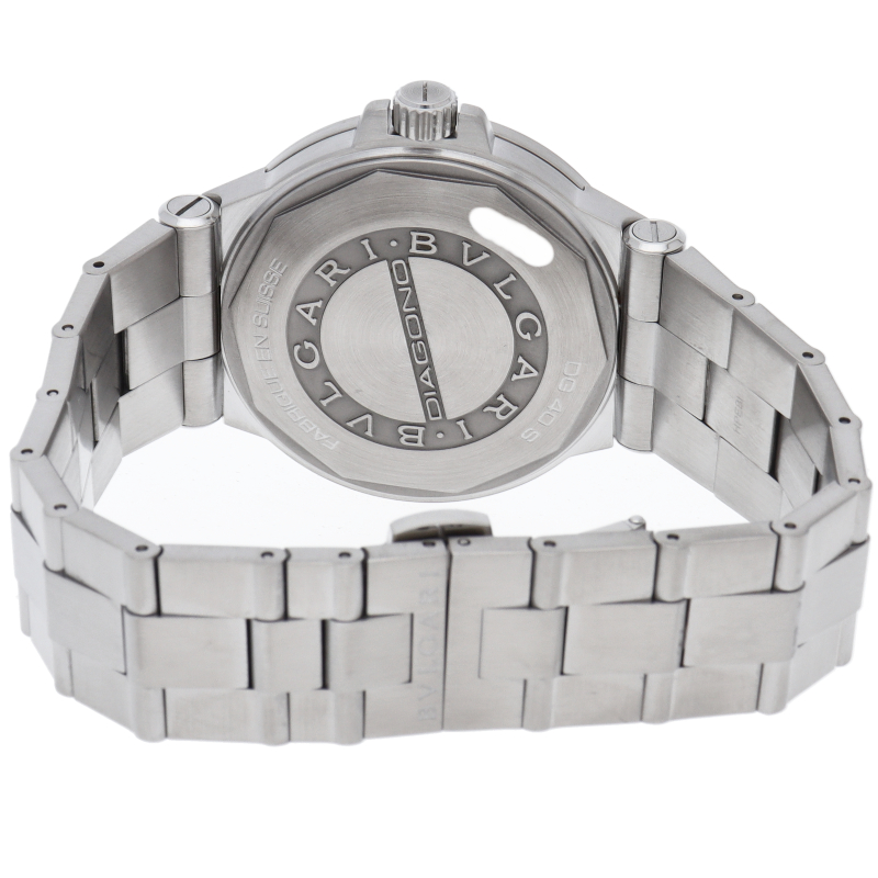 ブルガリでも人気のディアゴノシリーズのクロノグラフです。スポーティーかつシンプルなデザイン。DG40S/DG40BSSD