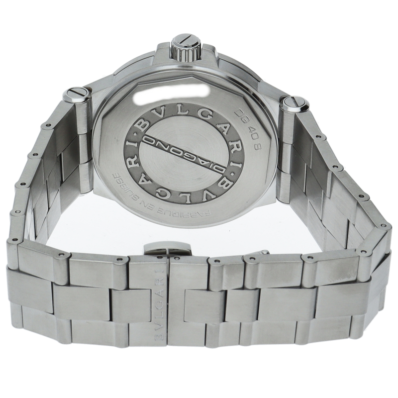 ブルガリでも人気のディアゴノシリーズのクロノグラフです。スポーティーかつシンプルなデザイン。DG40S/DG40BSSD