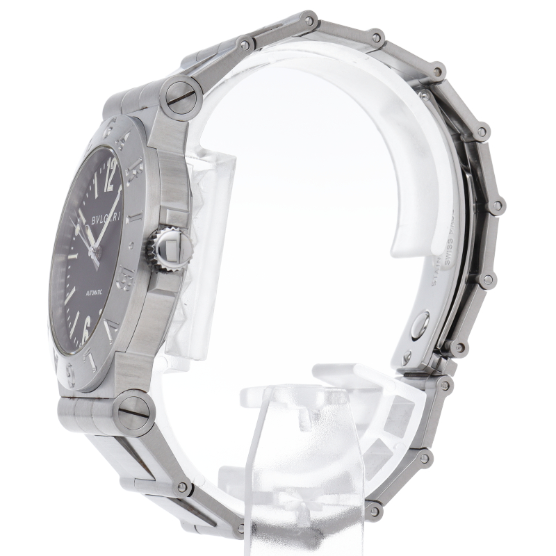 ブルガリの人気ロングセラーウォッチ「ディアゴノ スポーツ」。ベゼルに刻まれた「BVLGARI」のロゴが特徴的な1本。LCV35S/LCV35BSSD