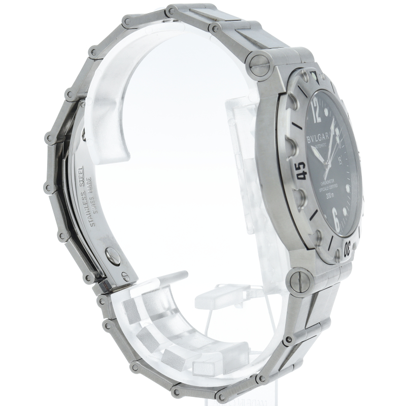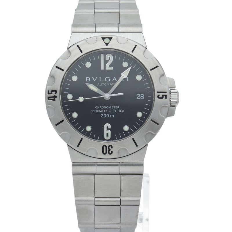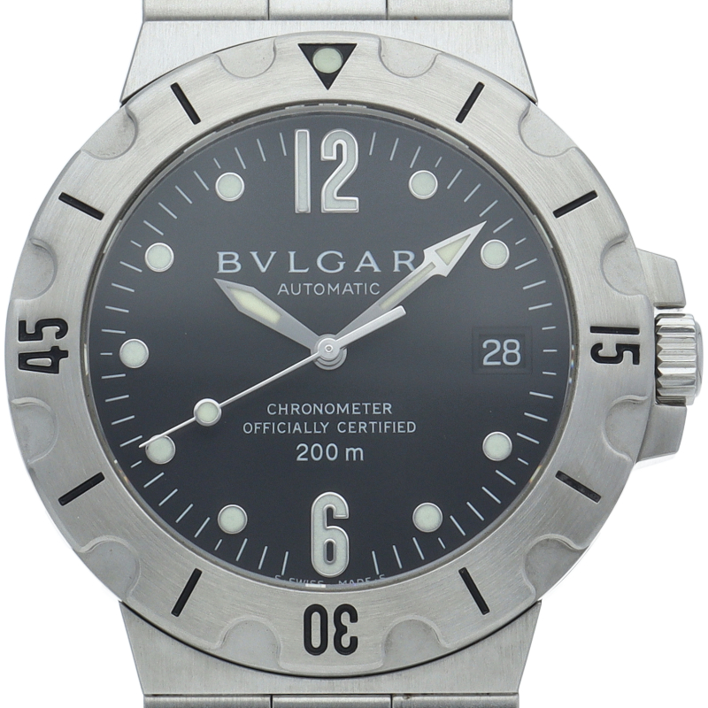ブルガリの人気ダイバーズウォッチ「スクーバ」。このモデルは、ブルガリの時計の中でも最新技術を使い、特徴的なシリーズとして区別されてるスクーバです。スポーティーでシンプルなダイバーモデルでありながら、エレガントなデザインが爽やかなイメージを与えます。SD38S/SD38SSD。