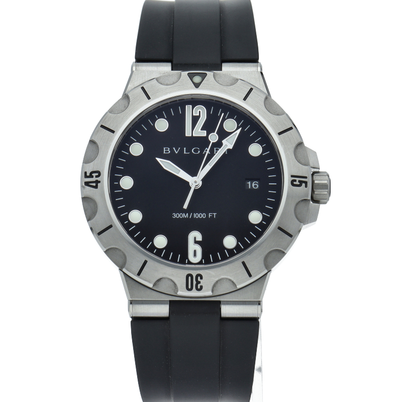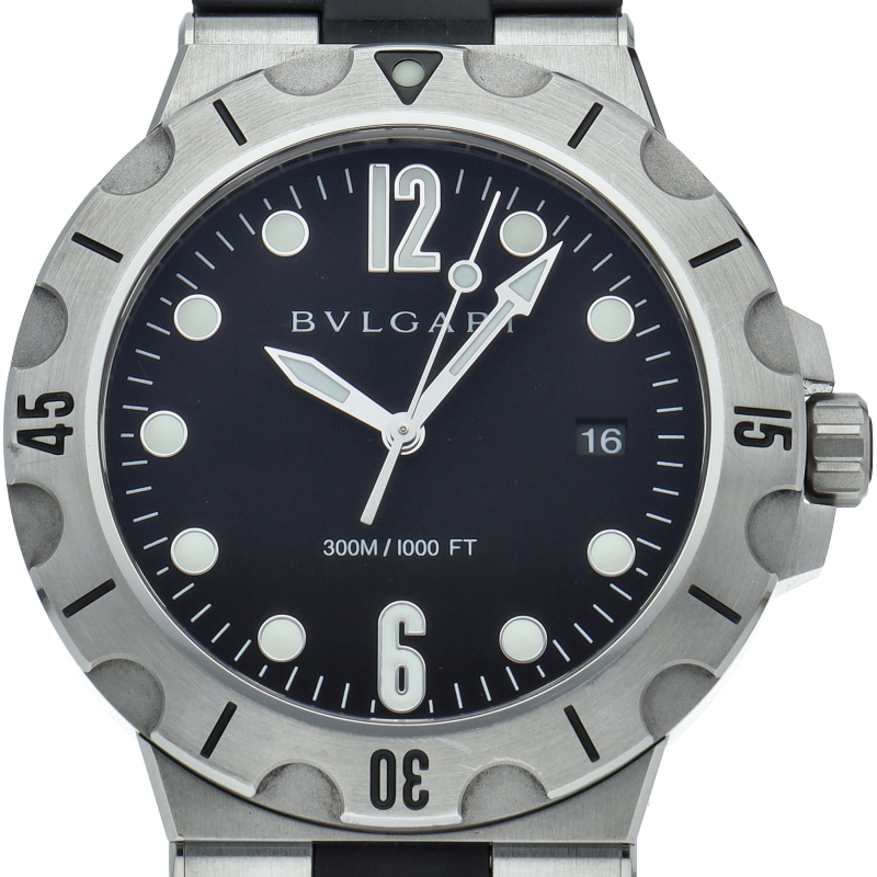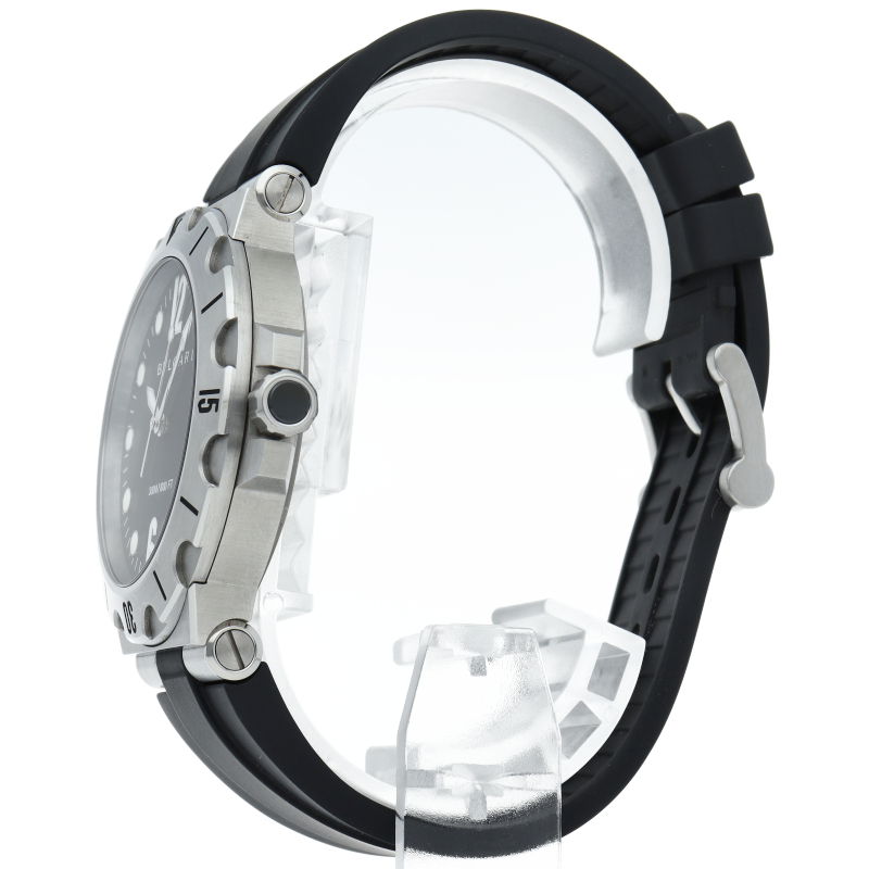 2015年8月に待望の復活を遂げたブルガリの大人気モデル「ディアゴノ・スクーバ」。300m防水機能を備えておりながら、ケースの厚み10.75mmと抑えており装着感が向上しています。また、ムーブメントは自社開発の「BVL 191 SOLOTEMPO CALIBER」を搭載。スポーティでありながらエレガントなスクーバはオンオフともに重宝します。