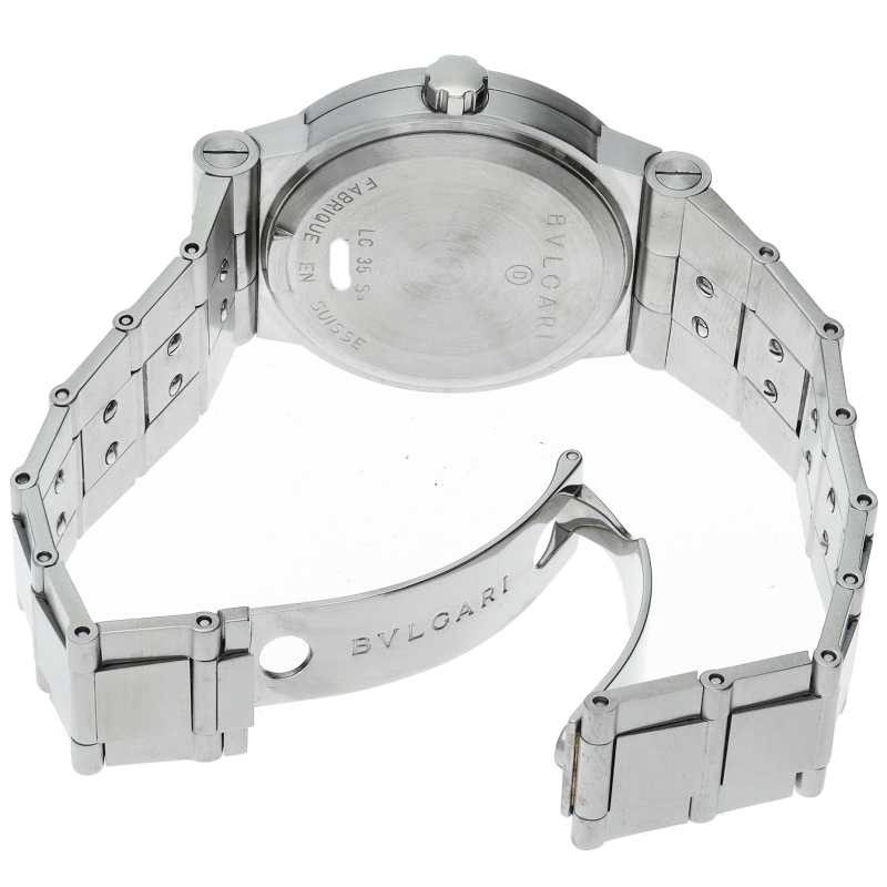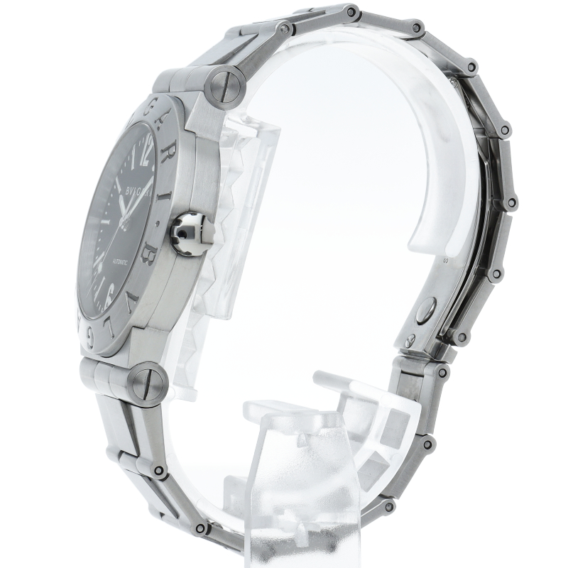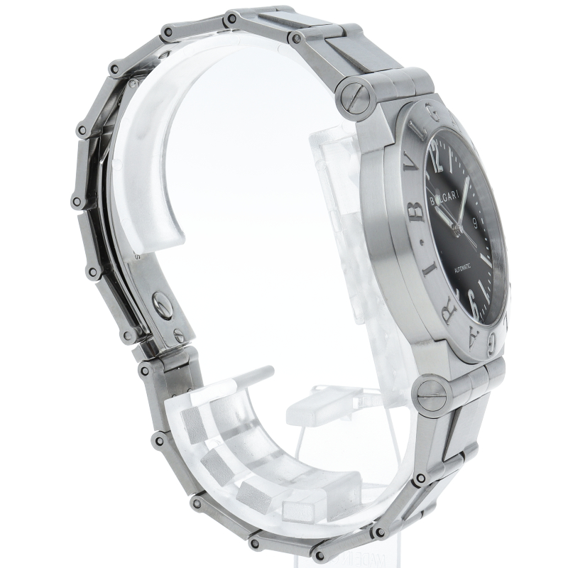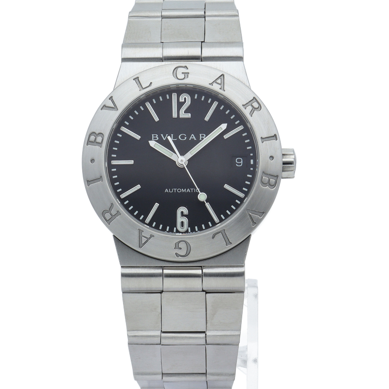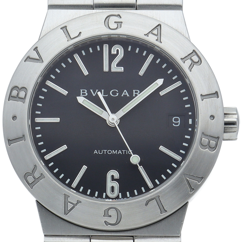 ブルガリでも人気の「ディアゴノ」シリーズ。スポーティーかつシンプルなデザインにデイト表示を備えた1本。