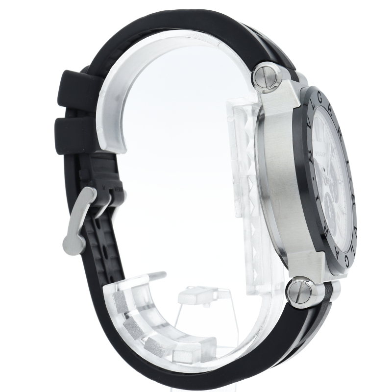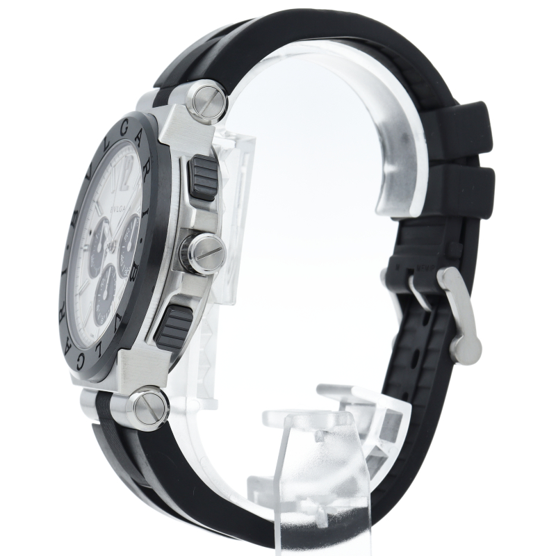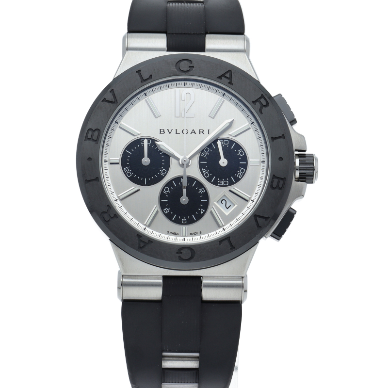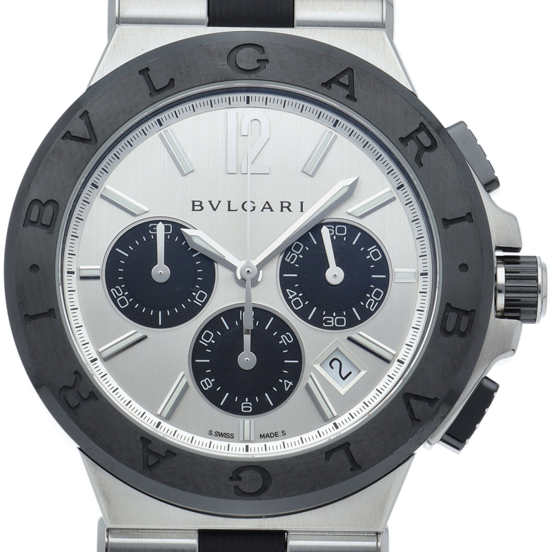 ディアゴノとは「競争する」という意味のギリシャ語にヒントを得て名付けられました。 一目でブルガリだとわかる洗練されたデザインのベゼルのロゴが特徴です。ベゼルにはセラミックが使用され、実用性はもちろん、ラグジュアリー感も演出しています。DG42SCCH/DG42C6SCVDCH