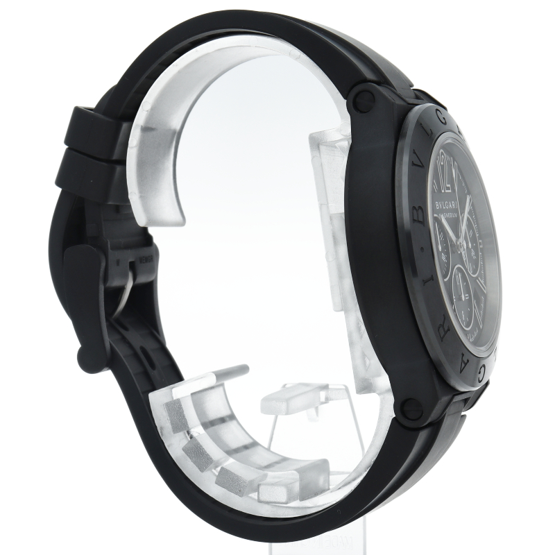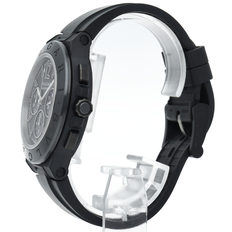 ディアゴノとは「競争する」という意味のギリシャ語にヒントを得て名付けられました。 一目でブルガリだとわかる洗練されたデザインのベゼルのロゴが特徴です。スポーティながら上品さが漂う1本です。DG42SMCCH/DG42BSMCVDCH。