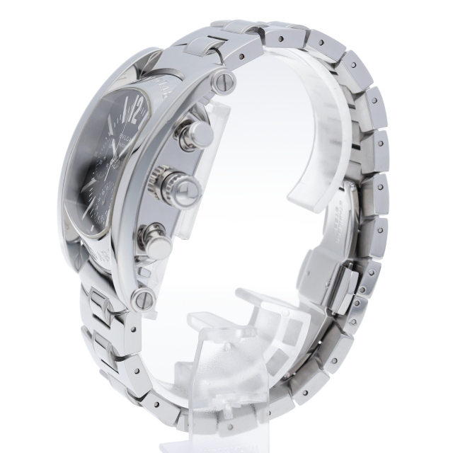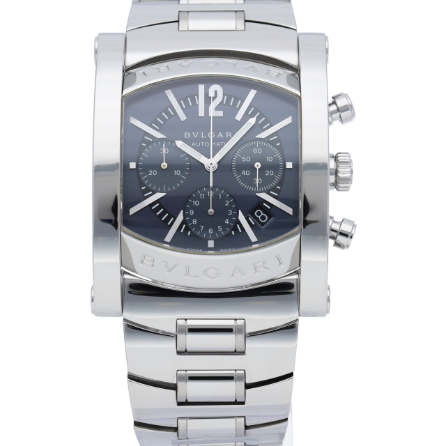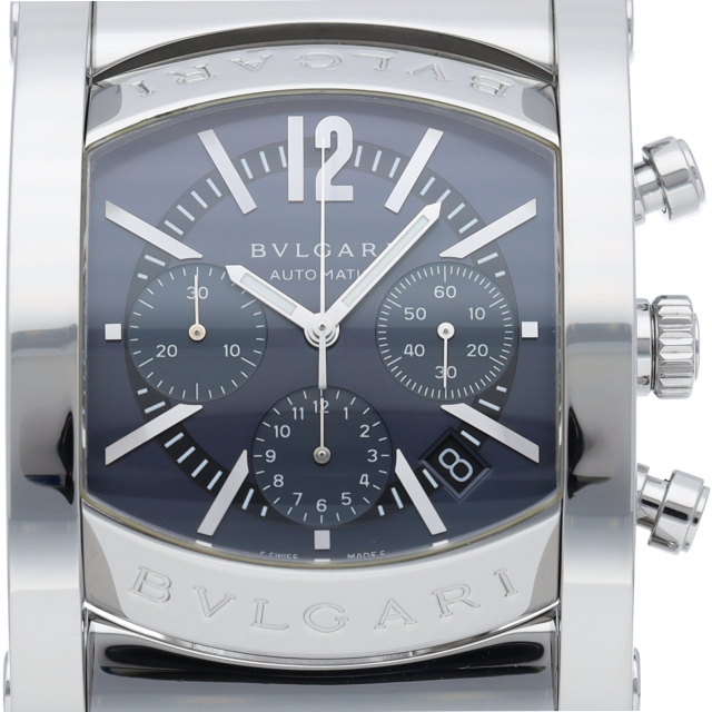 その独創的なデザインが人気のアショーマ48。立体的なインデックスや全体の鏡面仕上が上品で高級感ある仕上がりとなっております。クロノグラフ搭載モデル。AA48SCH(AA48BSSDCH)。