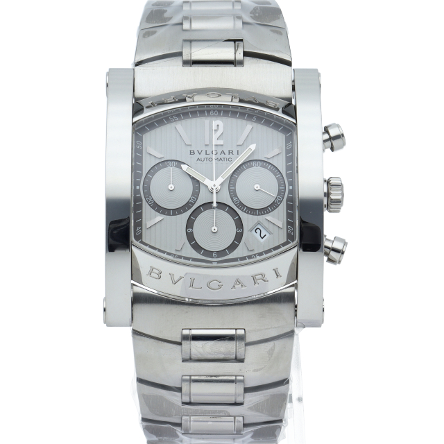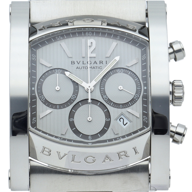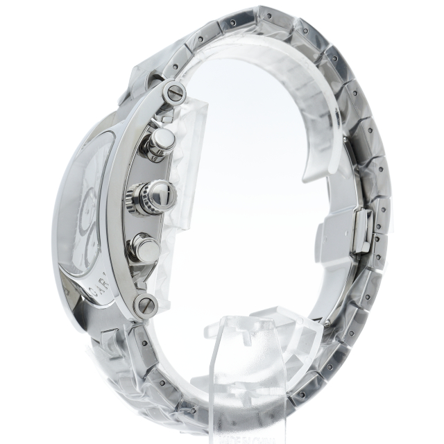 その独創的なデザインが人気のアショーマ48。立体的なインデックスや全体の鏡面仕上が上品で高級感ある仕上がりとなっております。クロノグラフ搭載モデル。AA48SCH(AA48C6SSDCH/JP)。