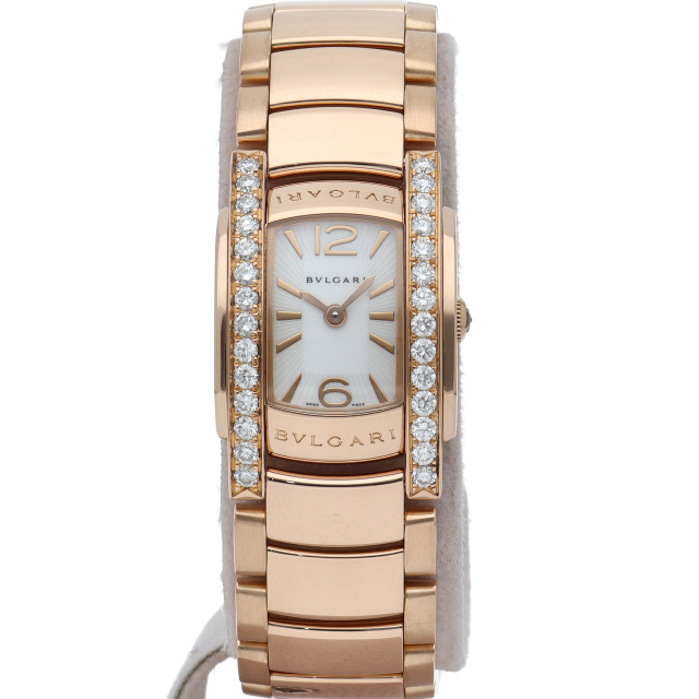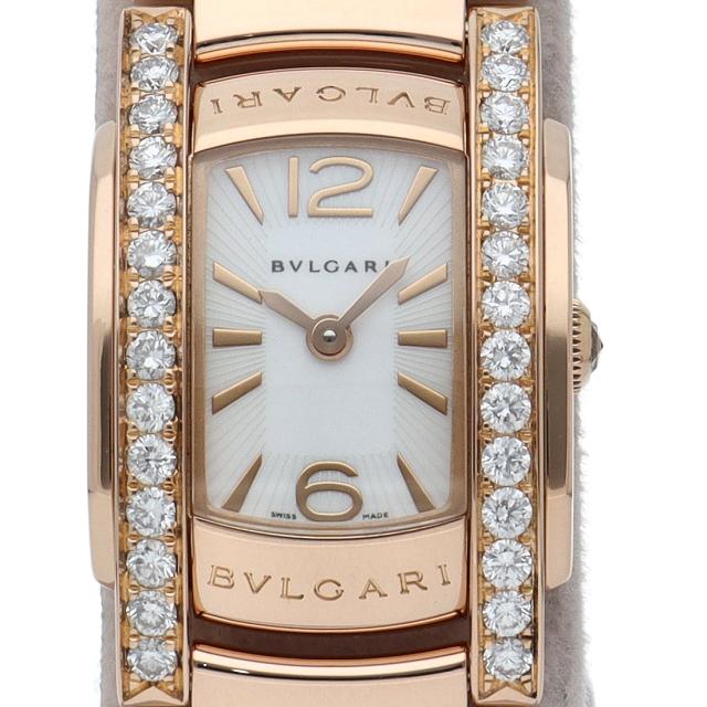 アショーマDの「D」とはDIVA(歌姫)、DIAMOND(ダイアモンド)、DONNA(女性)の全てを象徴し、ブルガリが理想とする女性像を表しています。宝飾メーカーらしいそのデザインと、ピンクゴールドを使ったその質感が高級感をかもし出しています。更にベゼルには上質なダイヤモンドが施された高級ラインです。AAP26G(AAP26WGDD1G)