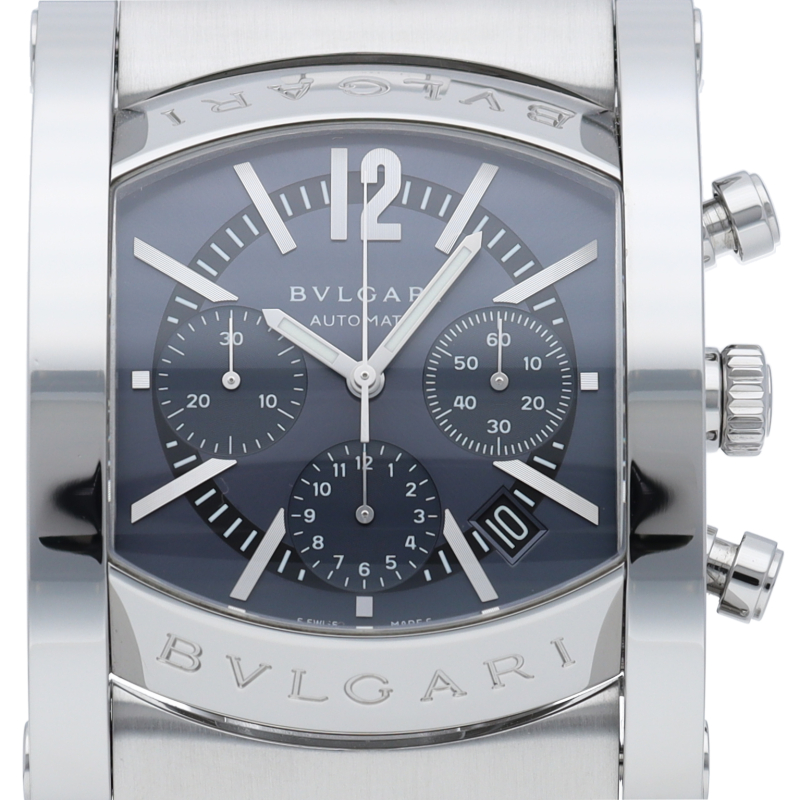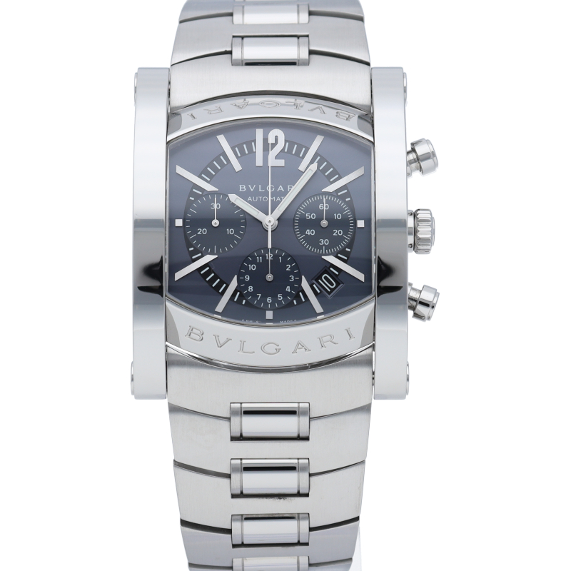 その独創的なデザインが人気のアショーマ48。立体的なインデックスや全体の鏡面仕上が上品で高級感ある仕上がりとなっております。クロノグラフ搭載モデル。AA48SCH/AA48C14SSDCH