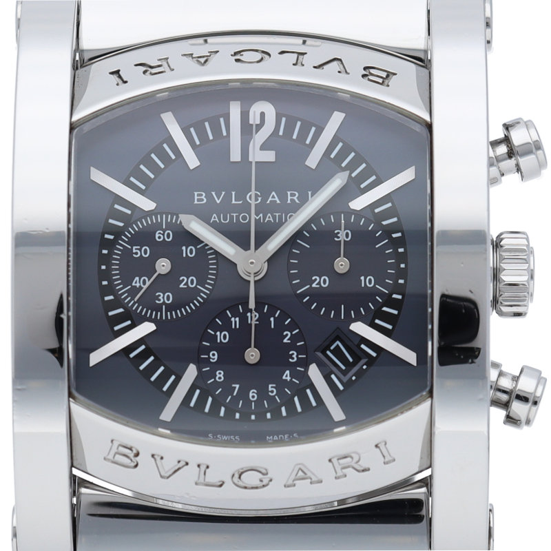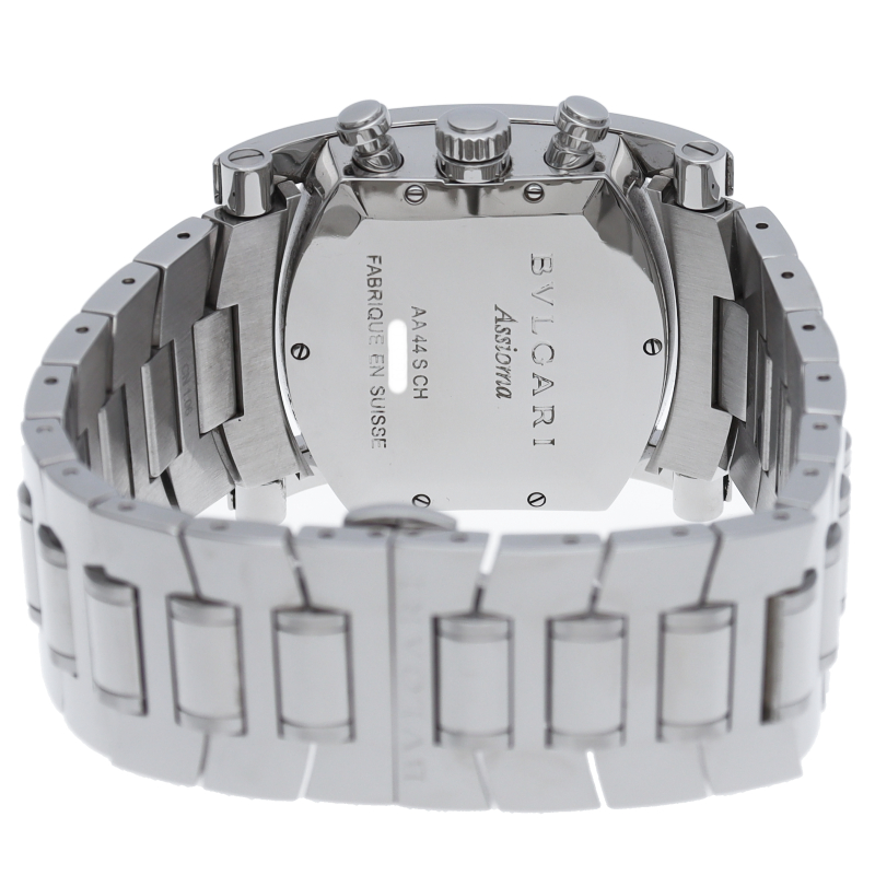その独創的なデザインが人気のアショーマ44。立体的なインデックスや全体の鏡面仕上が上品で高級感ある仕上がりとなっております。クロノグラフ搭載モデル。AA44SCH/AA44C14SSDCH
