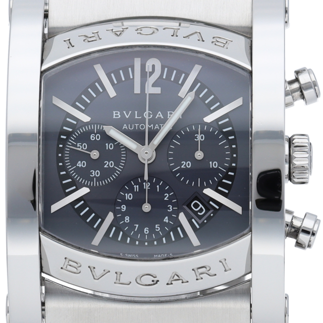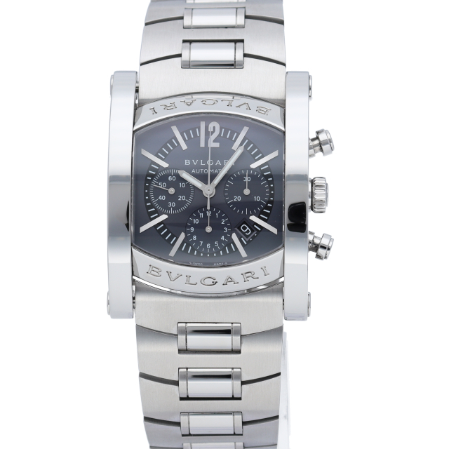 その独創的なデザインが人気のアショーマ44。立体的なインデックスや全体の鏡面仕上が上品で高級感ある仕上がりとなっております。クロノグラフ搭載モデル。AA44SCH(AA44C14SSDCH)