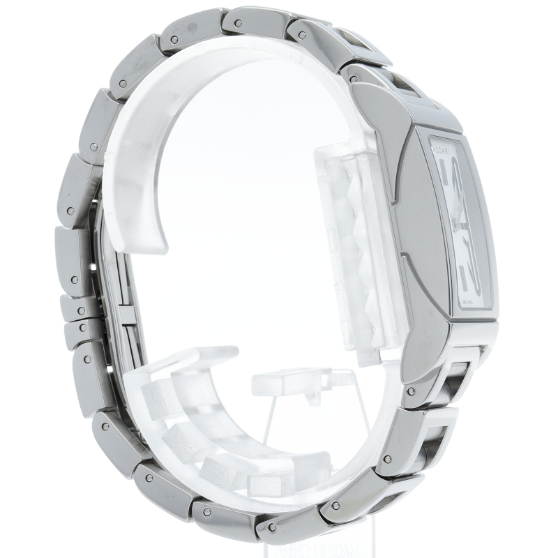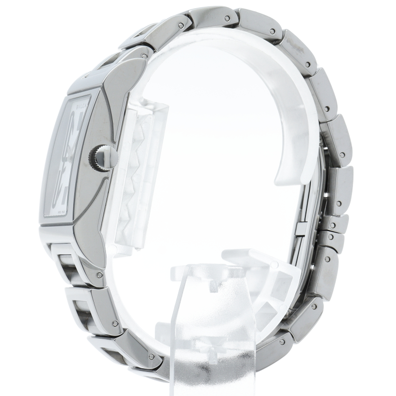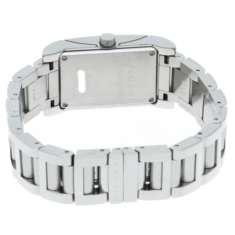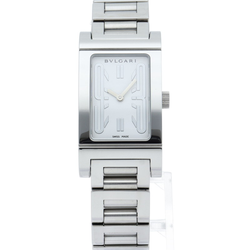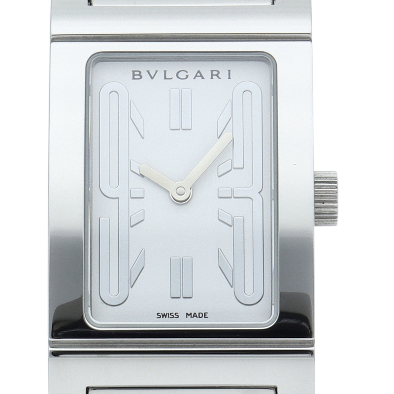 1930年代のイタリアの工業デザインにインスパイアされた独特なデザインが人気のブルガリの「レッタンゴロ」です。3時と9時のインデックスが特徴的。さりげない高級感をお楽しみいただけます。 RT39S。