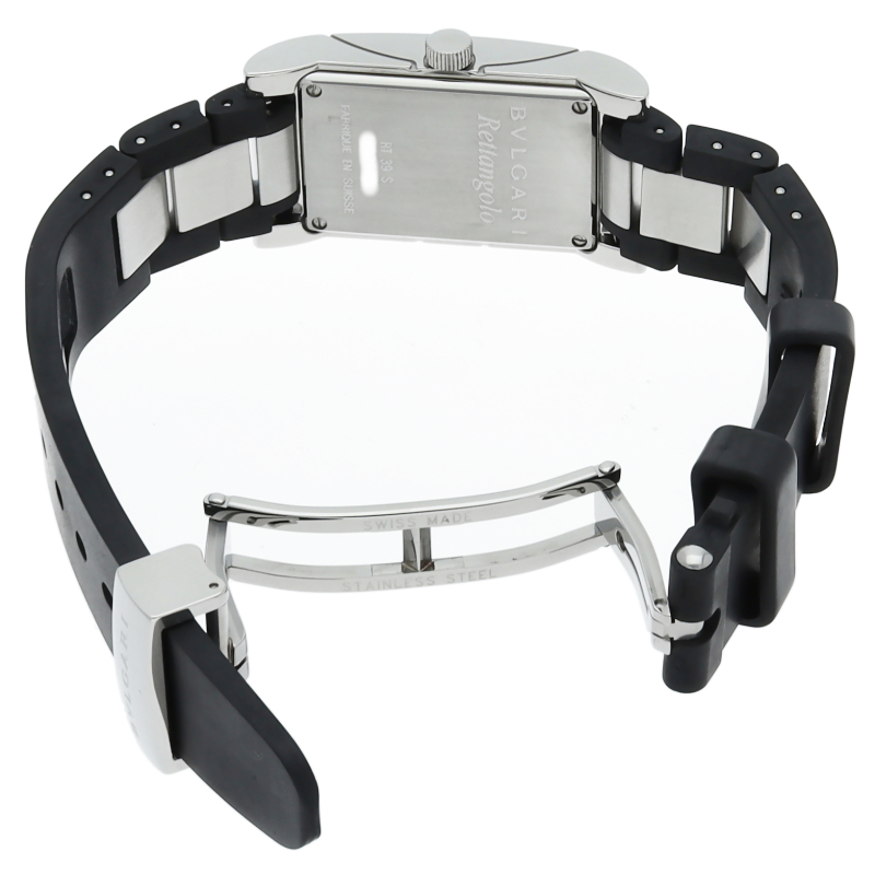 1930年代のイタリアの工業デザインにインスパイアされた独特なデザインが人気のブルガリの「レッタンゴロ」です。RT39S/RT39SV