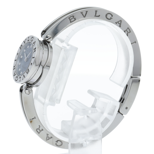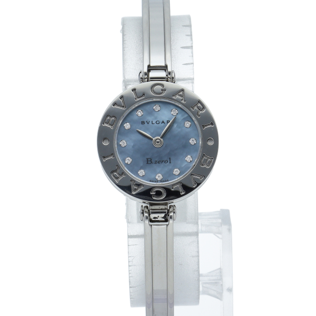 ブルガリの大人気シリーズ「ビーゼロワン」。アクセサリー感覚で着用できるかわいらしい人気ウォッチ。文字盤に12Pダイヤモンドが施された贅沢な1本。BZ22S(BZ22BSS/12)